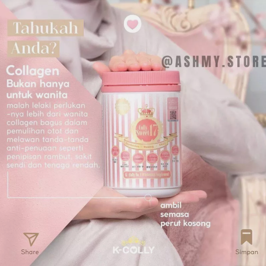 K-Colly Sweet 17 is the most luxorious collagen, with a super upgraded version. Enhanced with 1.5 million mg collagen nano formula to achieve 3 miracles all at once. High amount of collagen resulted in high absorption which be able to see the difference in the dot.