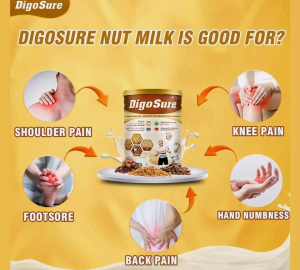 ? DigoSure nut milk - 100% plant protein, solution for arthritis, ingredients imported from the US help: ? Relieves knee pain, numbness in hands and feet ? Easy to commute and exercise ?Eat well, sleep well ? Good for the heart of diabetics With Clinically Proven Gold Formula 5-Loxin, Aquamin F and MSM, Helps Reduce Bone Resorption, Repair And Regenerate Cartilage, Increase Joint Flexibility. ? 14 Types of Premium Nuts from the American Company (Sachi Seeds, Methi Seeds, Almonds, Oats,...) both supply energy and nutrients for the body, and are good for bones and joints, preventing the risk of heart-related diseases. ? 23 Types of Nutritional Vitamins and Minerals, Health Promotion, Good for Diabetes and Heart Patients. ? Natural Sweet Grass Cereal Flavor, Delicious Drink, No Weight Gain, Obesity. ? Good for various body types, including diabetics, colic, blood pressure patients, vegetarians and dieters.