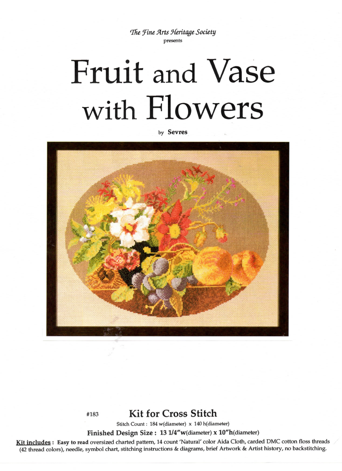 Fine Art Counted Cross Stitch Kit Fruit and Vase w Flowers Sevres Needle Work