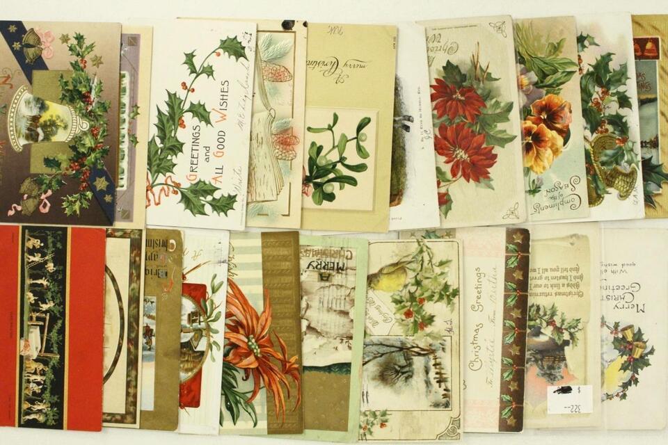 Vintage Postcards Lot CHRISTMAS Art UDB Early Cancel Linen Greeting New Years. Corners missing on three of the cards. ?Range from fair to VG. Noted edge wear and some creasing. Smoke and pet free.