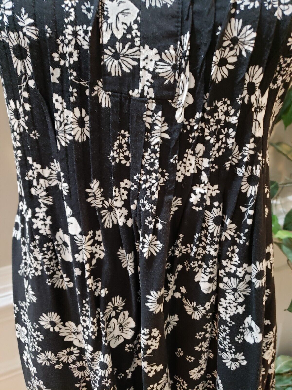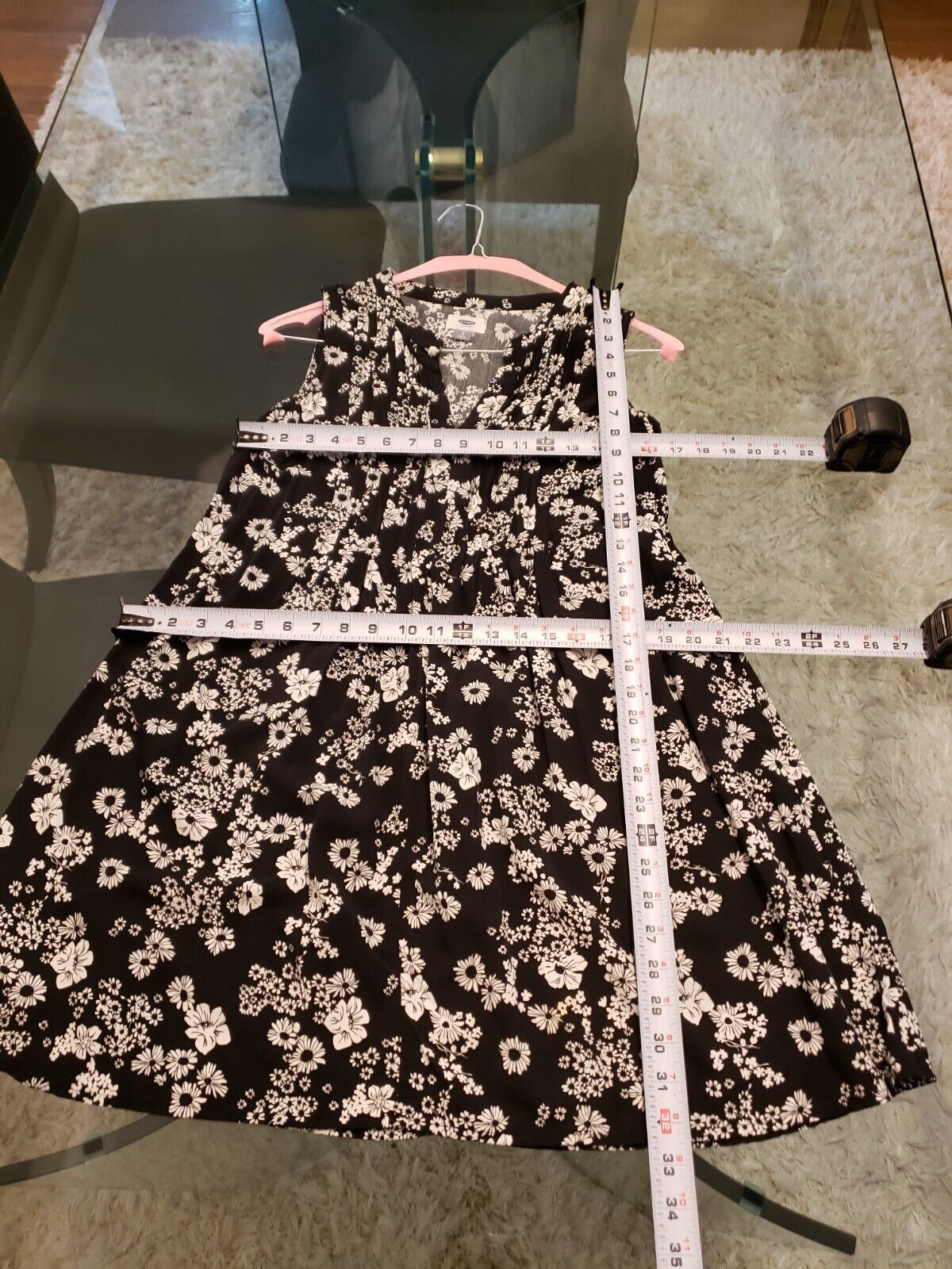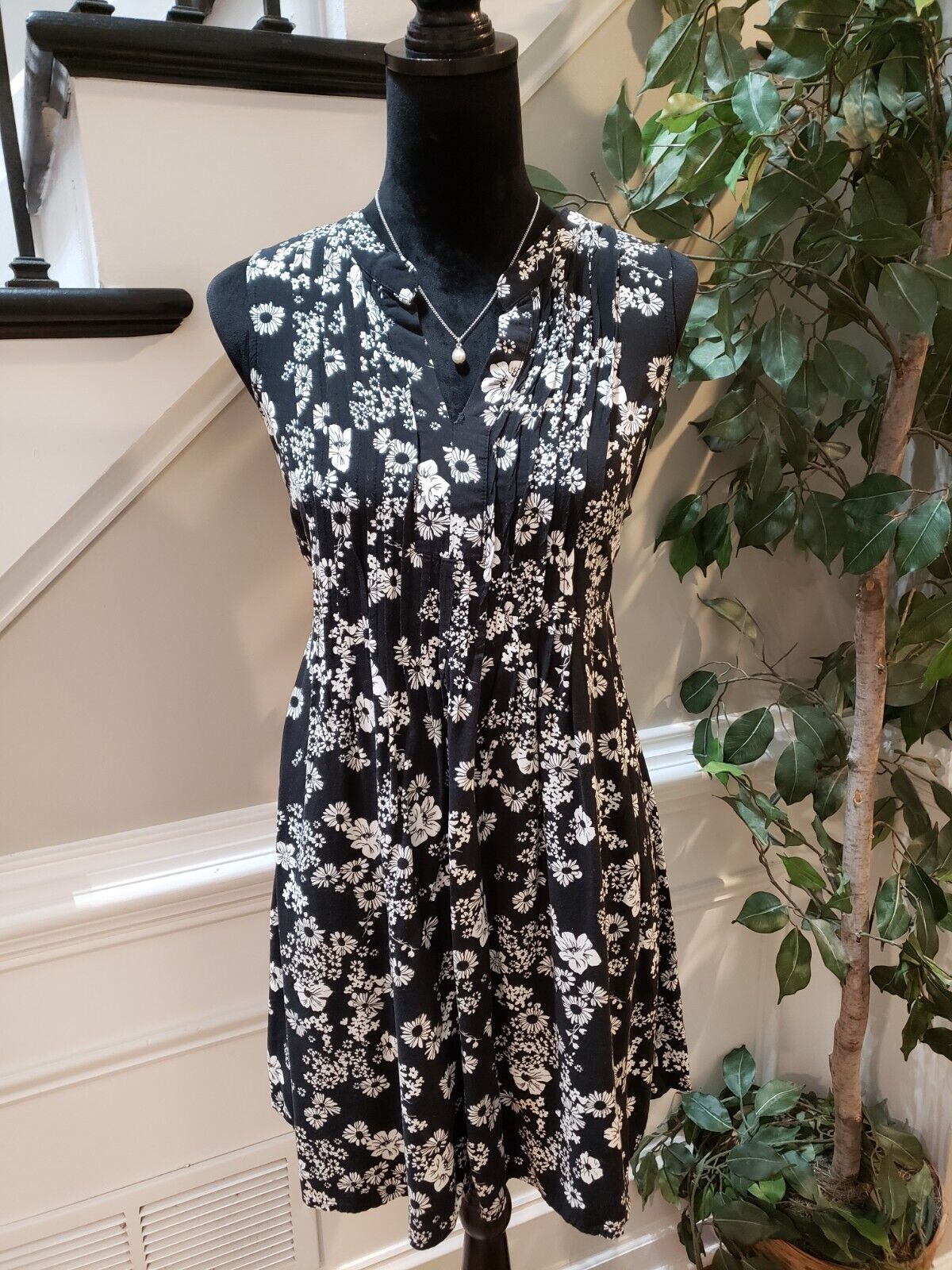 Old Navy Women's Black Floral Pleated V Neck Sleeveless Knee Length Dress SP.