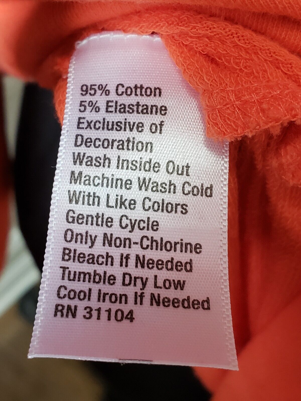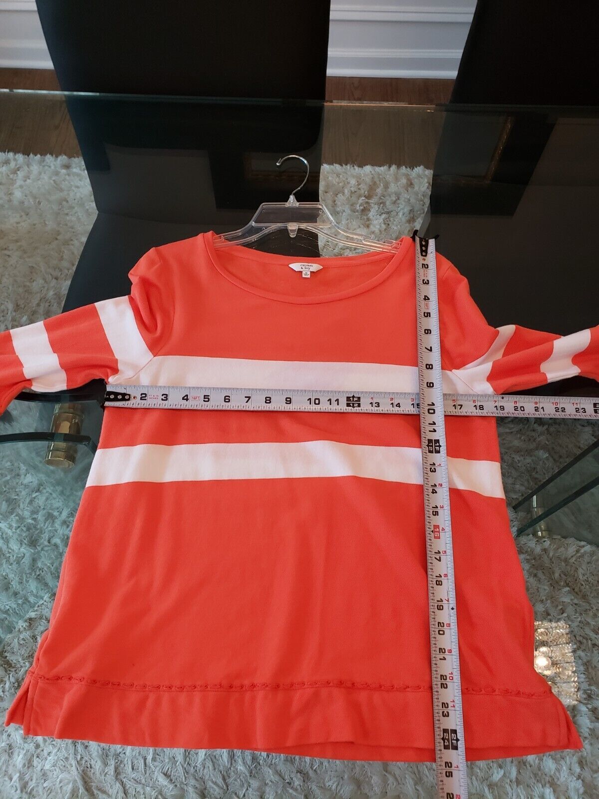 Crown Ivy Women's Orange White Cotton Round Neck Long Sleeve Top Blouse M.