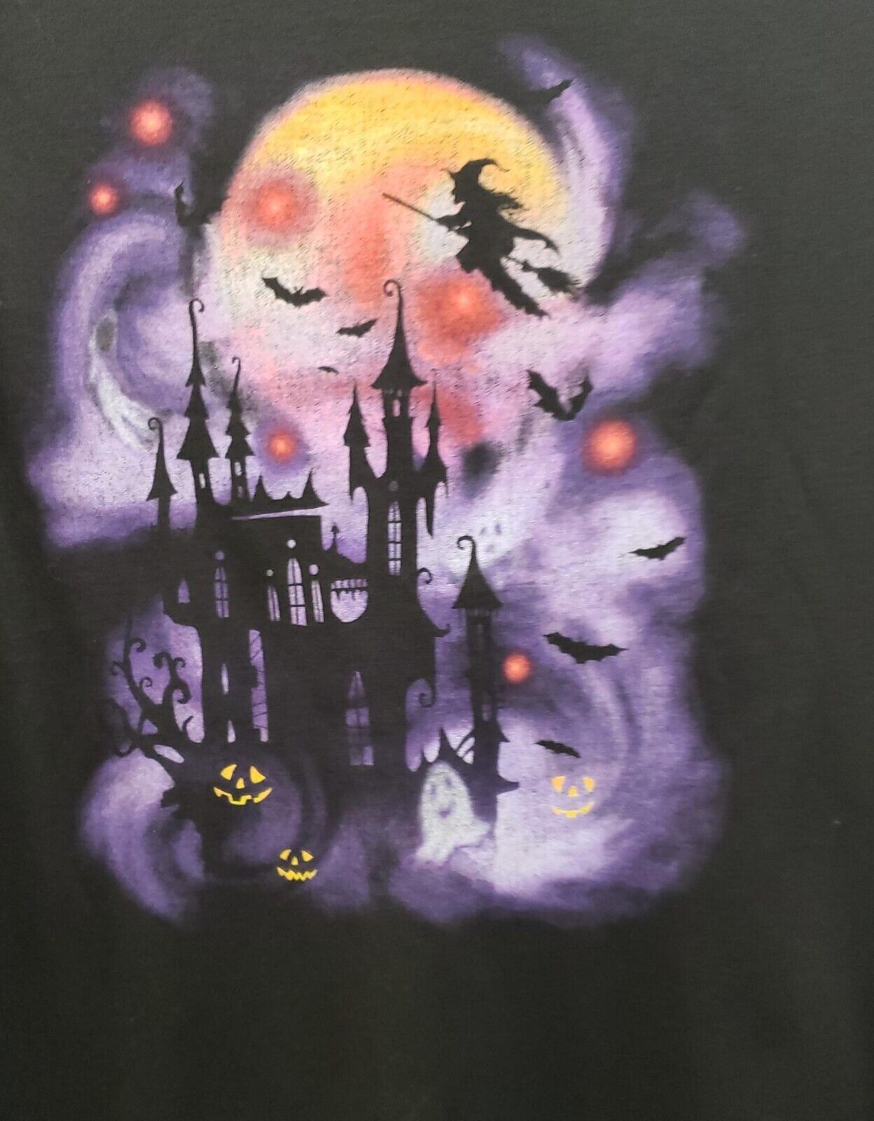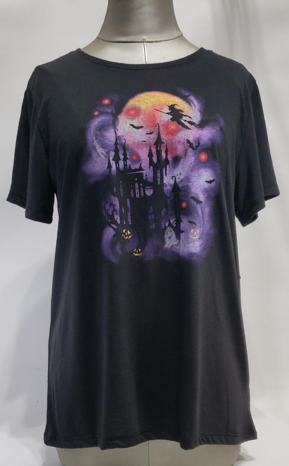 Way To Celebrate Women Spooky Halloween Haunted House Graphic Tee Black L(12-14