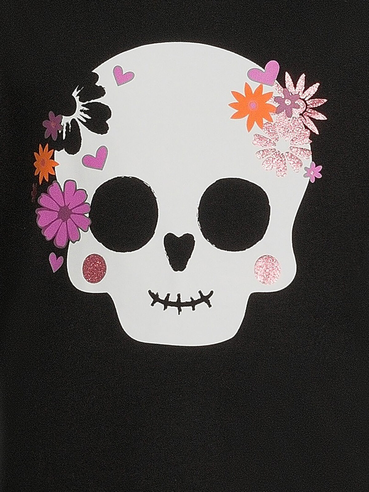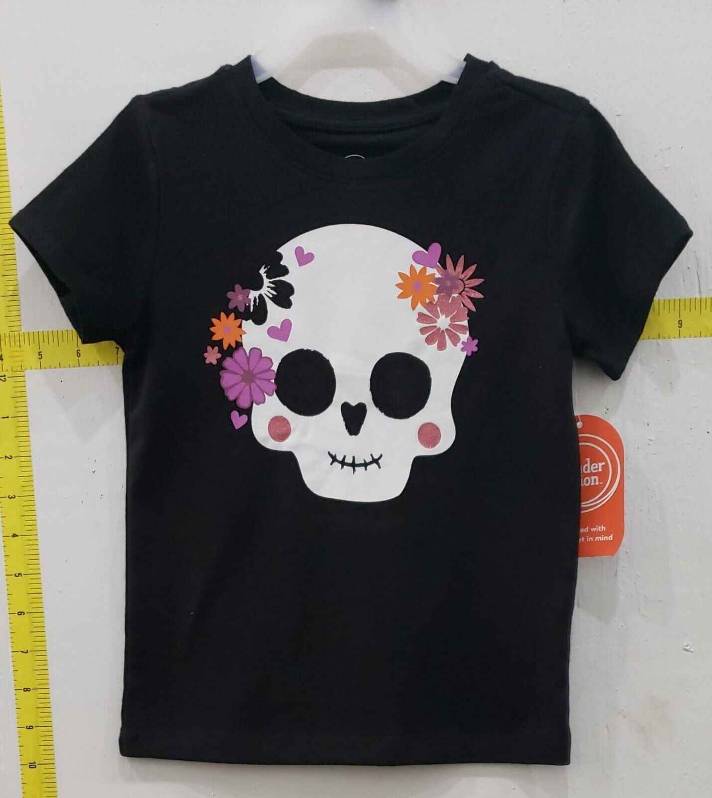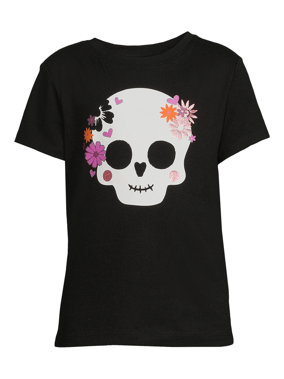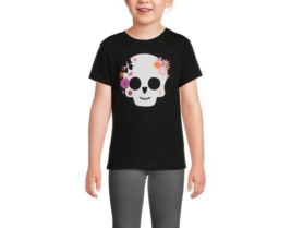 Wonder Nation Girls Halloween Skull Short Sleeves Tee Black Soot XS (4-5)