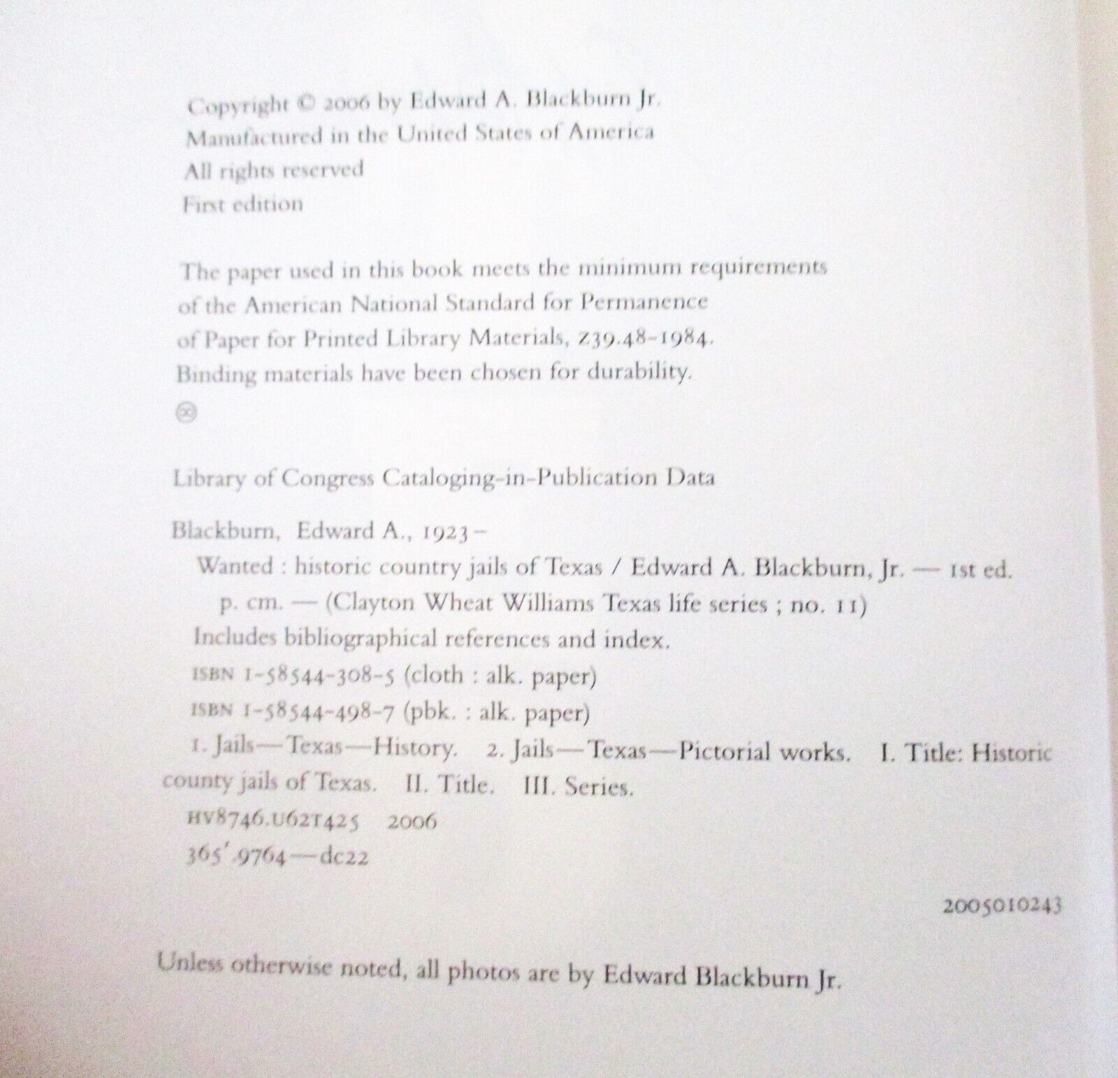 WANTED: HISTORIC COUNTY JAILS OF TEXAS (2006) Ed Blackburn, Jr. SIGNED HC 1st