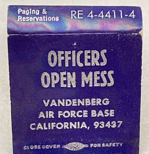Rare Matchbook Officers Open Mess Vandenberg Air Force Base Calif. gmg Unstruck