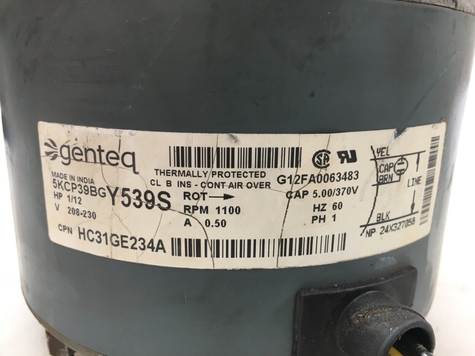 This is GE 5KCP39BGY539S Condenser FAN MOTOR 1/12 HP 208/230V HC31GE234A used part.