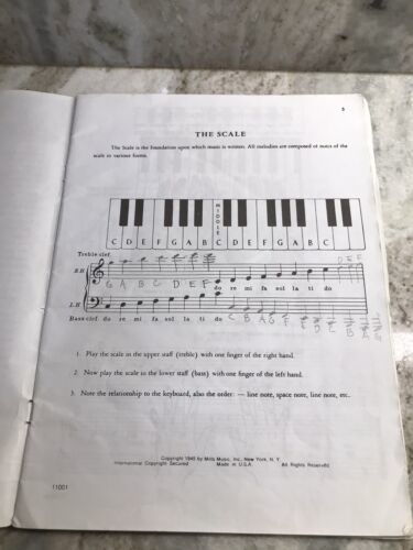 The book is in sheet music format and is specifically designed for piano playing. It includes a variety of exercises and pieces to help students improve their technical skills on the instrument. Additionally, it covers musical theory and provides students with a comprehensive understanding of the piano. This book is perfect for anyone looking to start their piano studies or for those who want to improve their skills. For Item Condition See photos attached. Page from 1-5 and 30-35 are missing. Loose pages. Hand writing noted. ShipN24H. Inventory Location MW1119