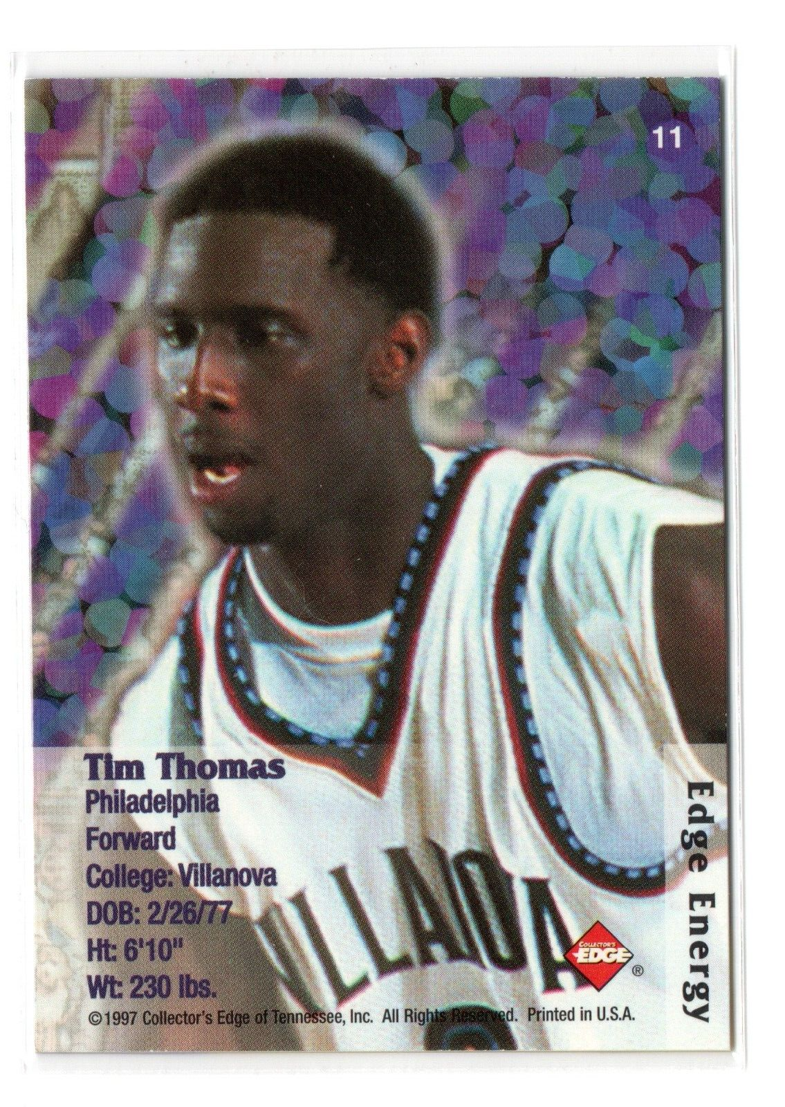 1997 Collector's Edge Energy Tim Thomas #11 Villanova Wildcats NBA Rookie -76ers