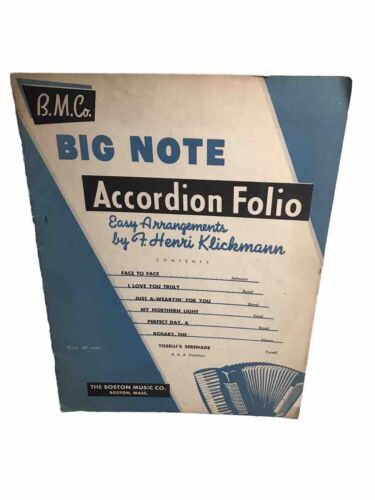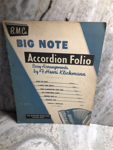 Vintage Accordion Songbook Big Accordion Folio Big Note By F. Henri Klickmann