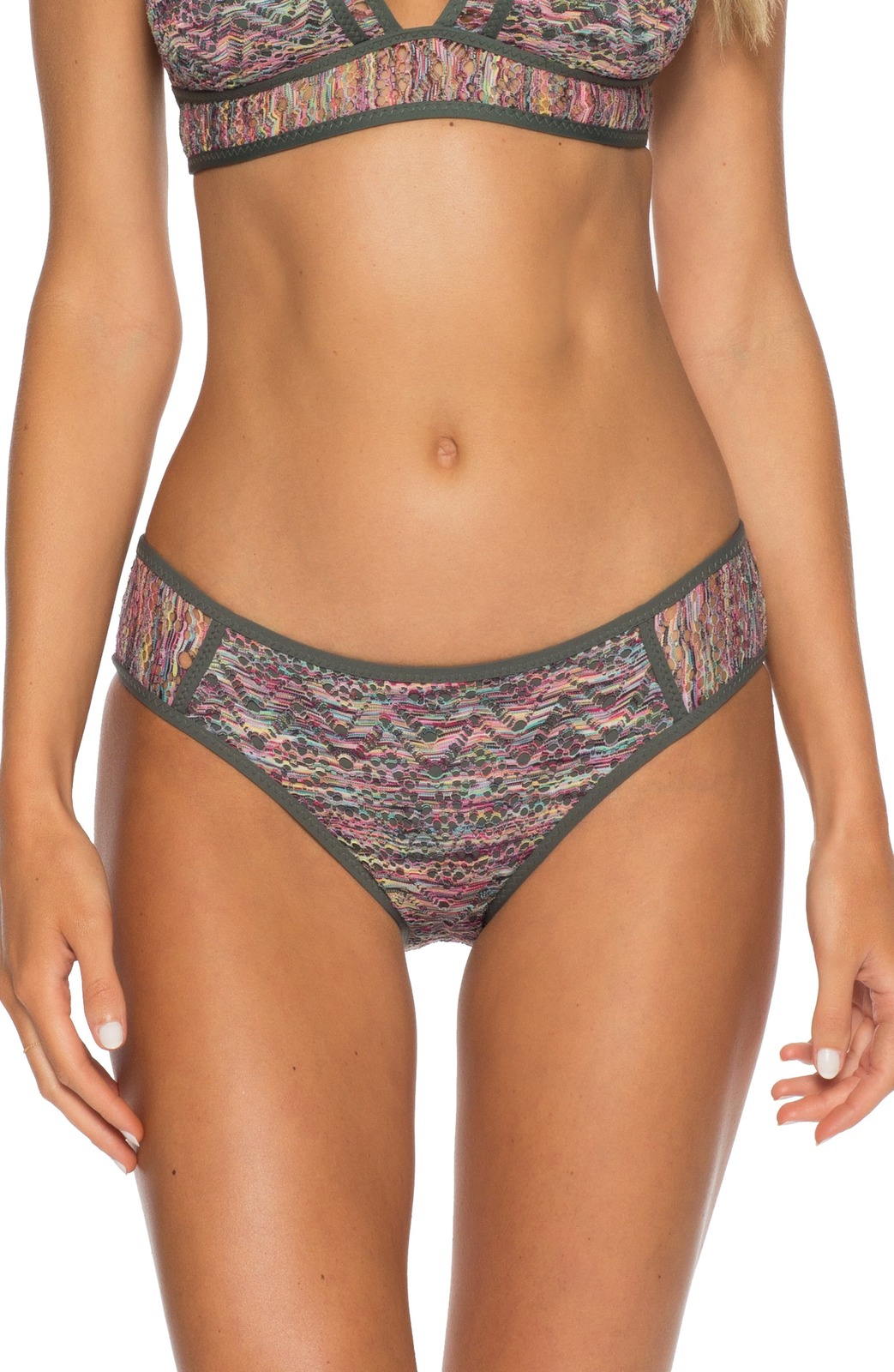 This is a bottom only, coordinating top sold separately Color/pattern: black/sky Design details: hipster, sheer cut out with binding, multi color crochet pattern Crochet: 96% polyester, 4% spandex Solid: 84% nylon, 16% spandex Hand wash Imported.