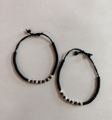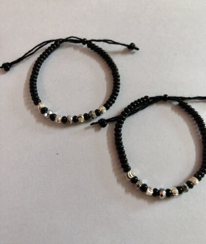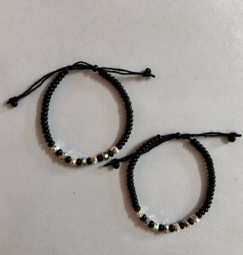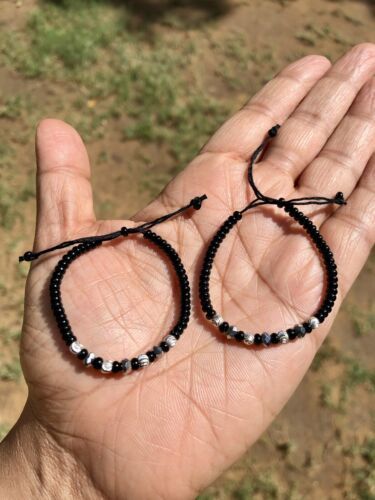 Bracelet de protection contre les mauvais yeux en argent 925 2 pieces, amulette Nazariya pour enfants, nourrissons, nouveau-nes, bijoux en perles noires, fait main, reglable 2