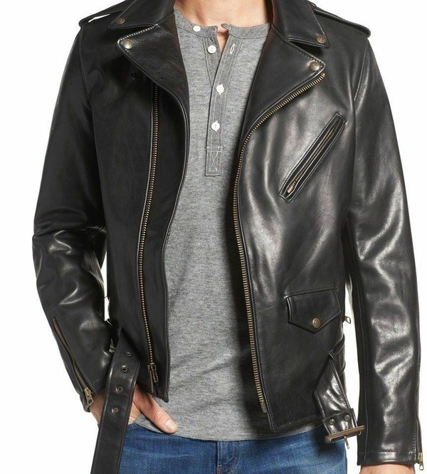 New Men's Stylish Biker Motorcycle Black Genuine Lambskin Leather