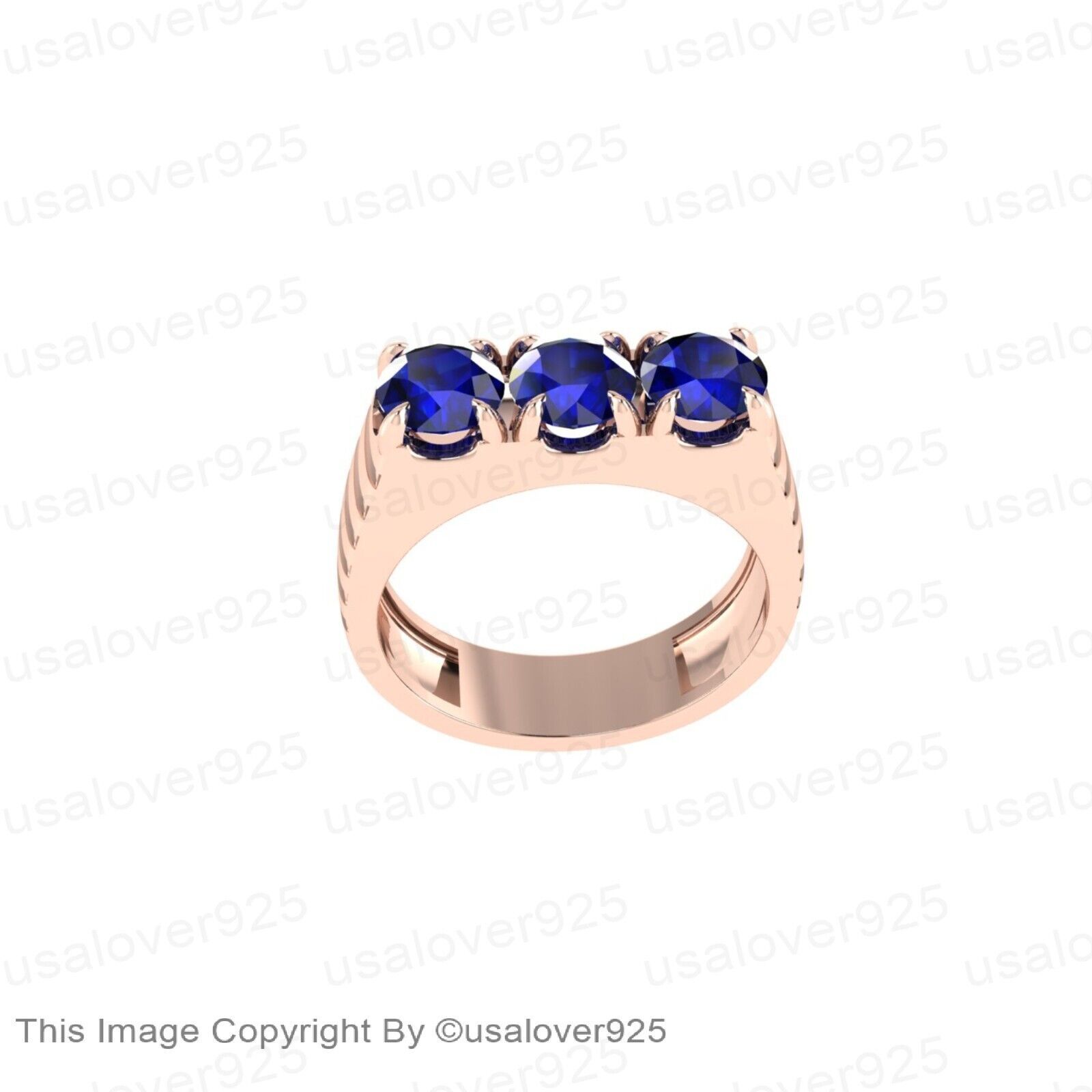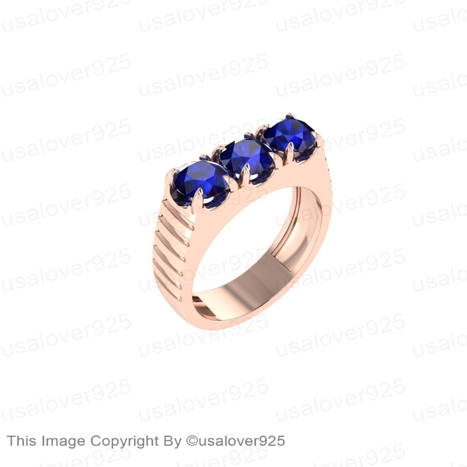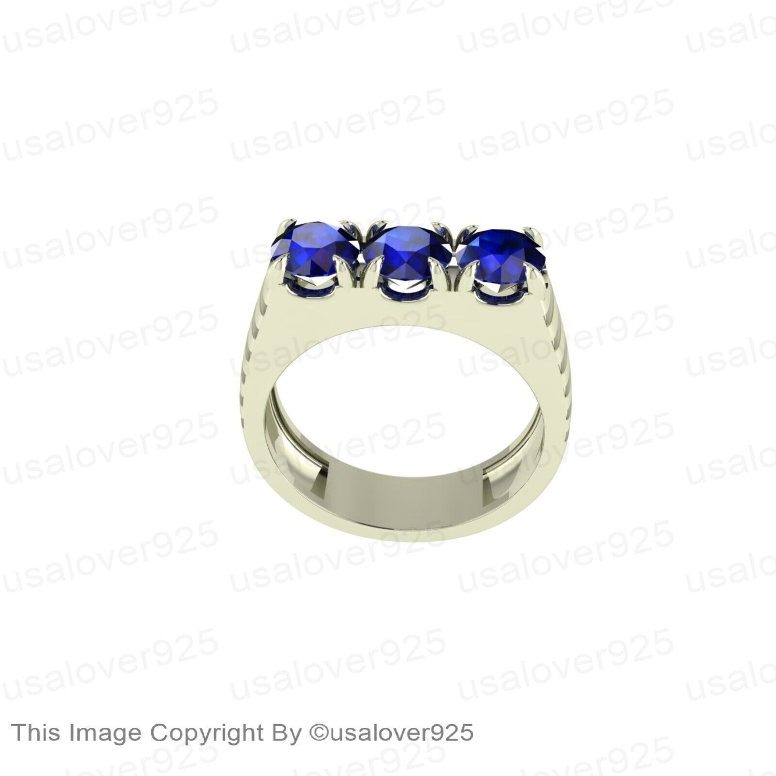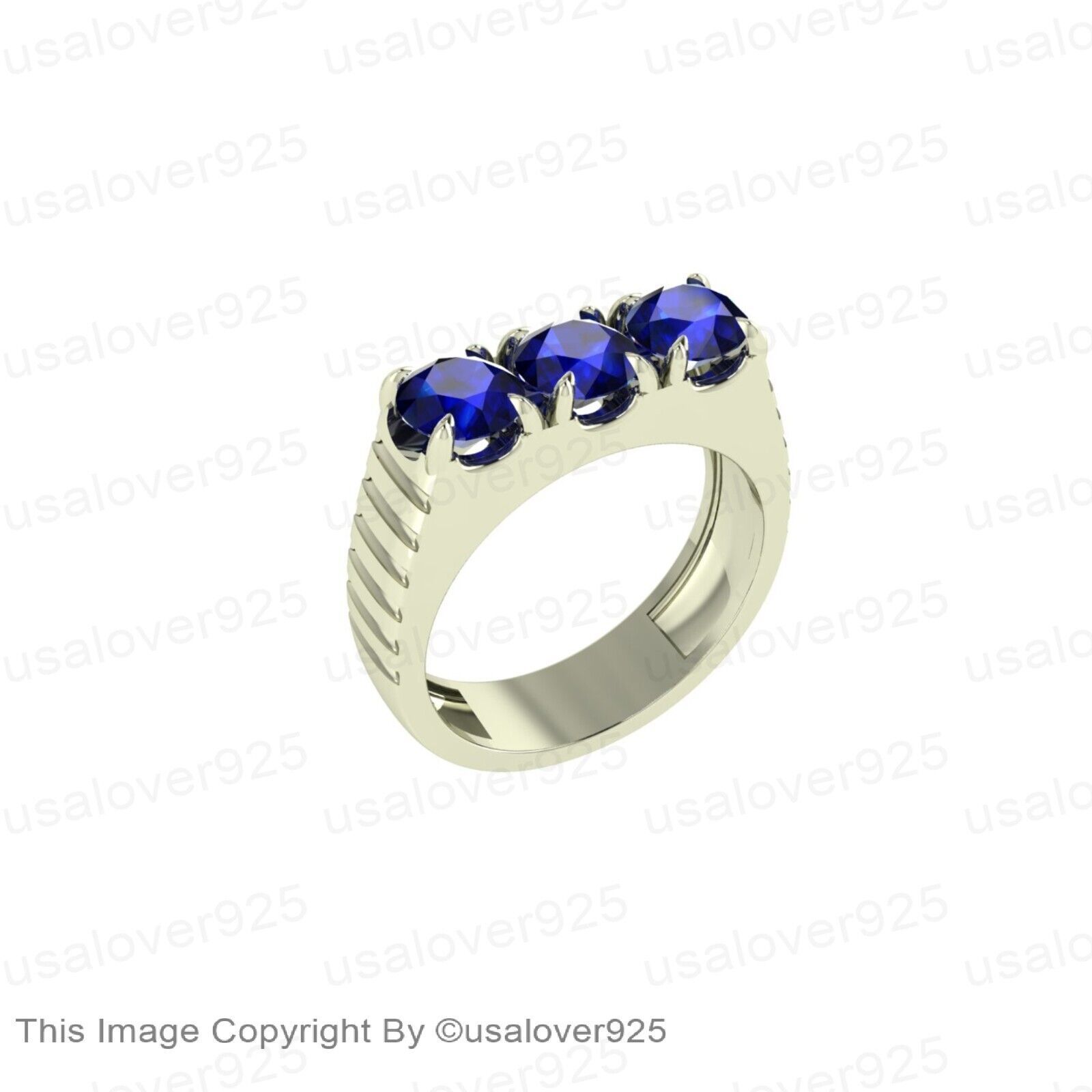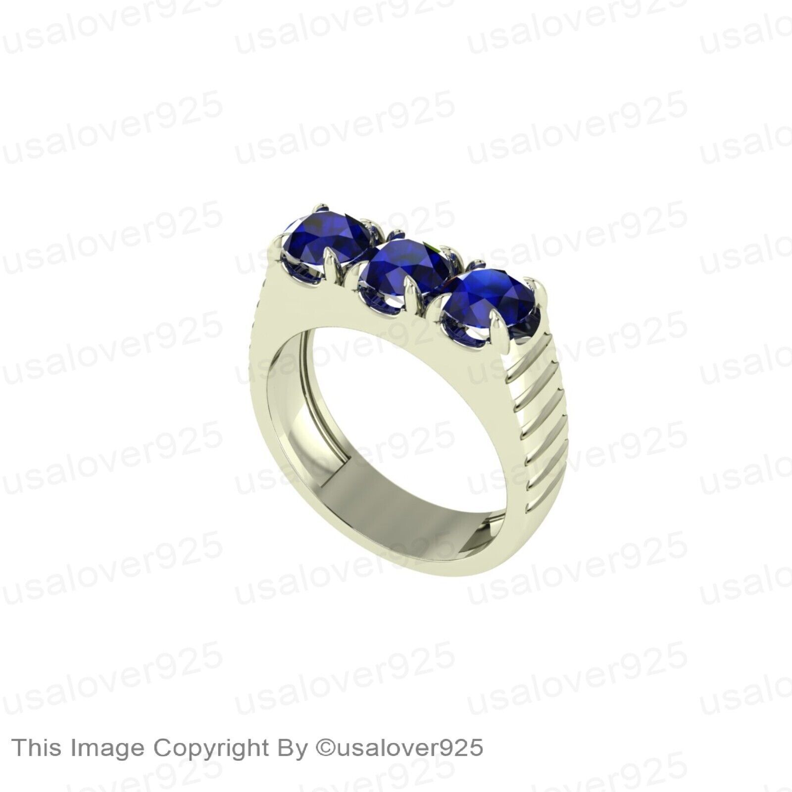 Blue Sapphire Round Gemstone Sterling Silver Handmade Unisex Ring Jewelry