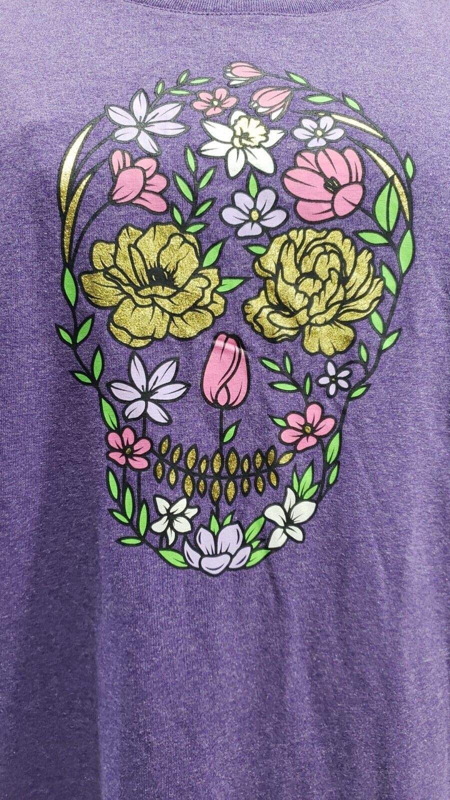 Celebrate Women's Floral Sugar Skull Day of the Dead T-Shirt Purple L (12-14