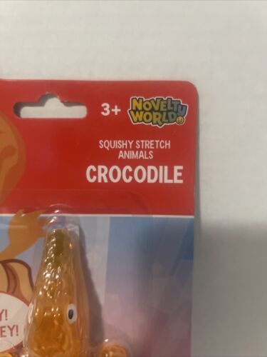 Introducing an Orange Squishy Stretchy Sticky Slimly Crocodile Toy from Novelty World, perfect for all occasions and suitable for children aged 3 and above. This life-like creature toy is a replica of a crocodile, with a size of 14" L x 1" W x 1" D. It features a stretchy and slimy texture, making it perfect for imaginative play.