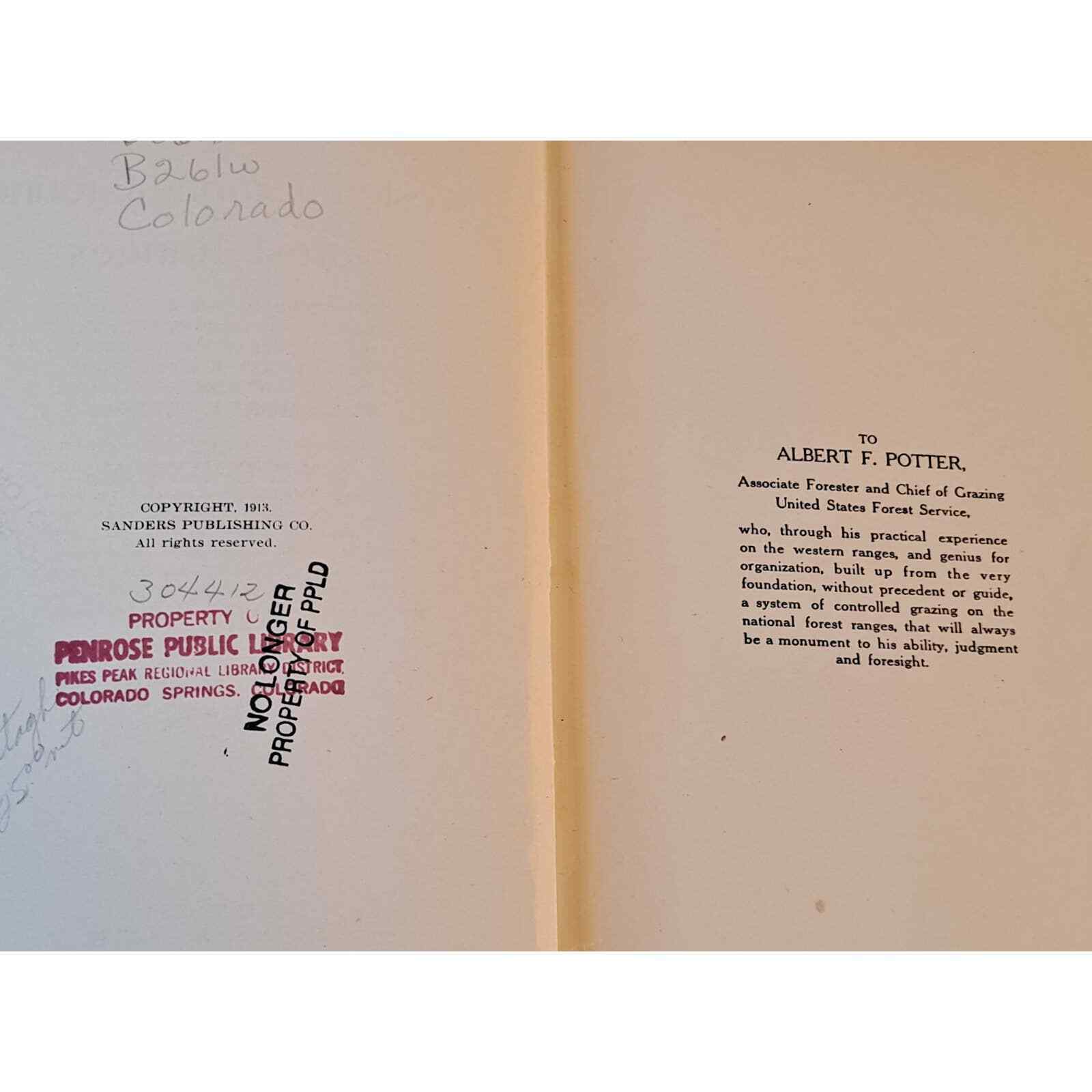 Western Grazing Grounds and Forest Ranges by Will C. Barnes (1913 1st Ed. HC)