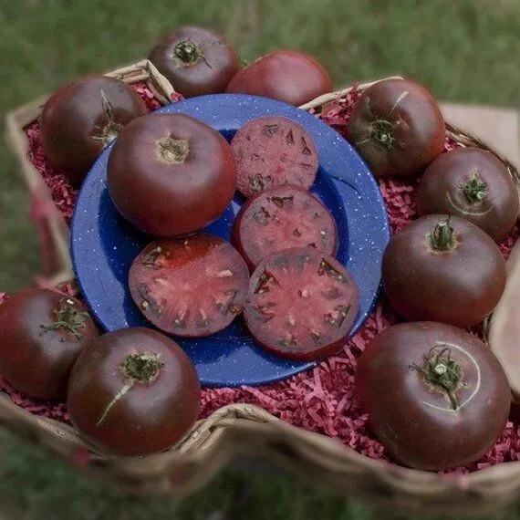 Cherokee Purple seeds, originating from Tennessee, are thought to have been passed down from Native Americans of the Cherokee tribe. This heirloom tomato variety consistently ranks very high in taste tests. Slice Cherokee Purple tomato for rich, dark color and unmatched sweet, rich taste on sandwiches or in salads. The tomato is a beautiful dusky pink with a deep, rich-red interior. Cherokee Purple grows well in most regions of the U.S. Let the fruit ripen on the vine for the best flavor. This one is a consistent taste test winner at tomato fests around the country. For an heirloom, it is a good producer.