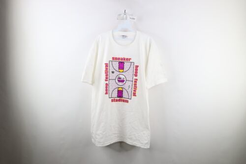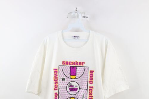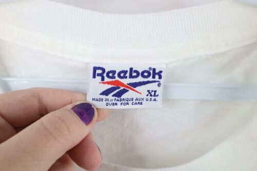 Vintage 90s Reebok Mens XL Spell Out Hoop Festival Sneaker Stadium T-Shirt USA