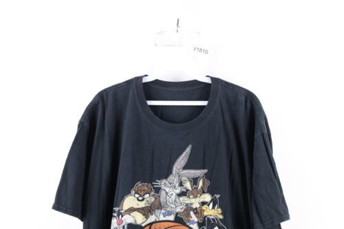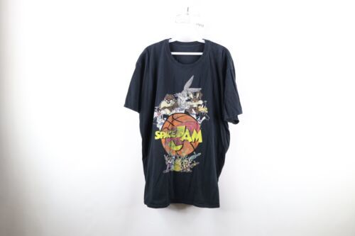 Vintage Mens 2XL XXL Distressed Spell Out Space Jam Basketball T-Shirt Black