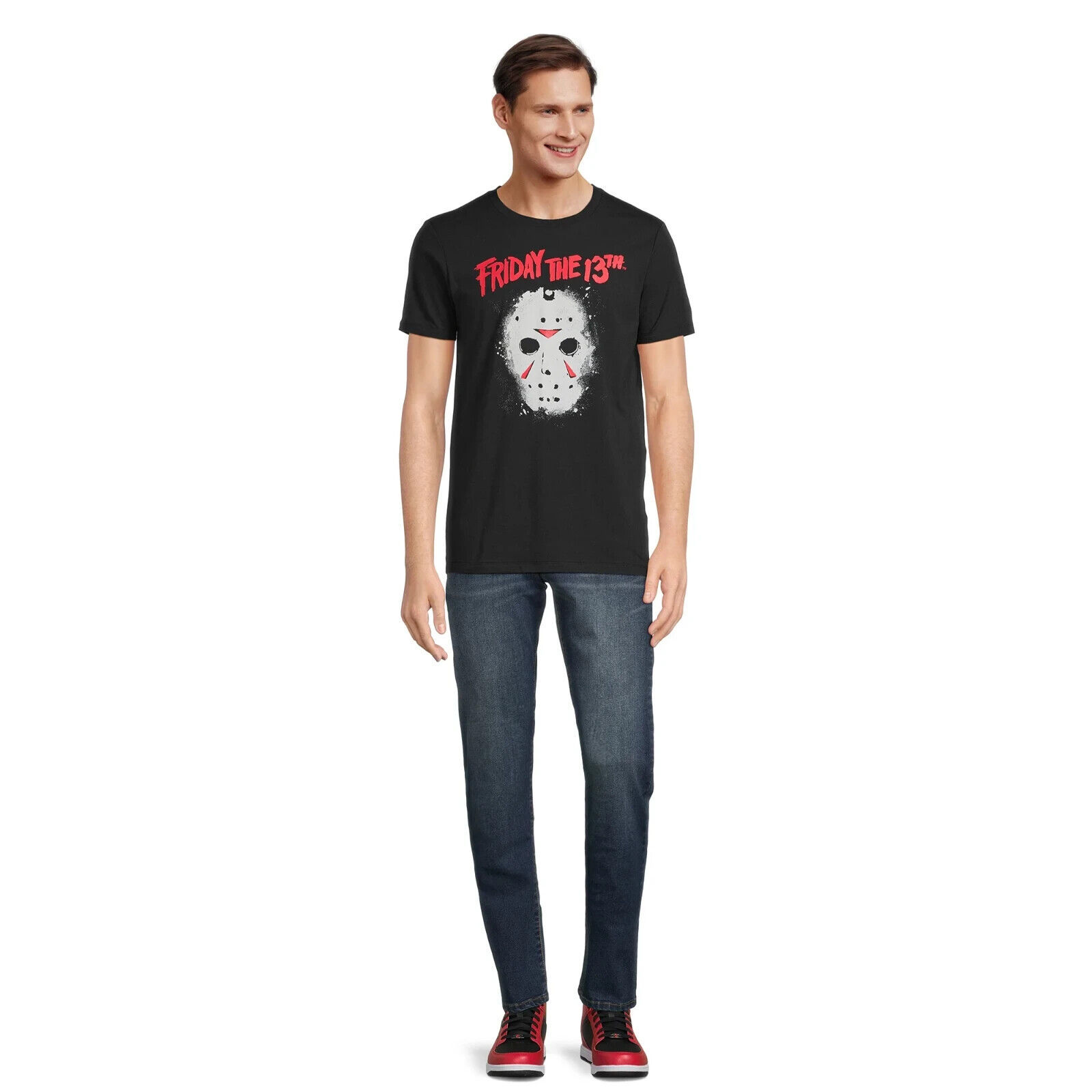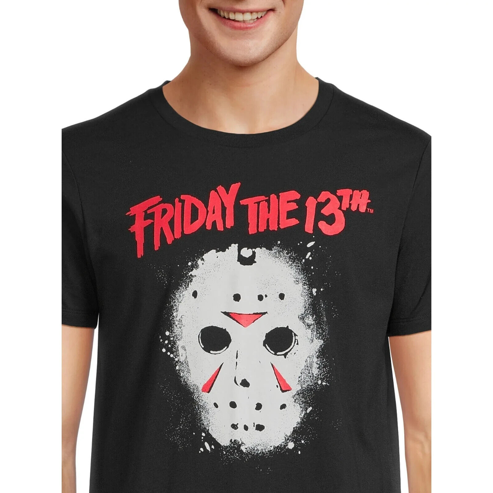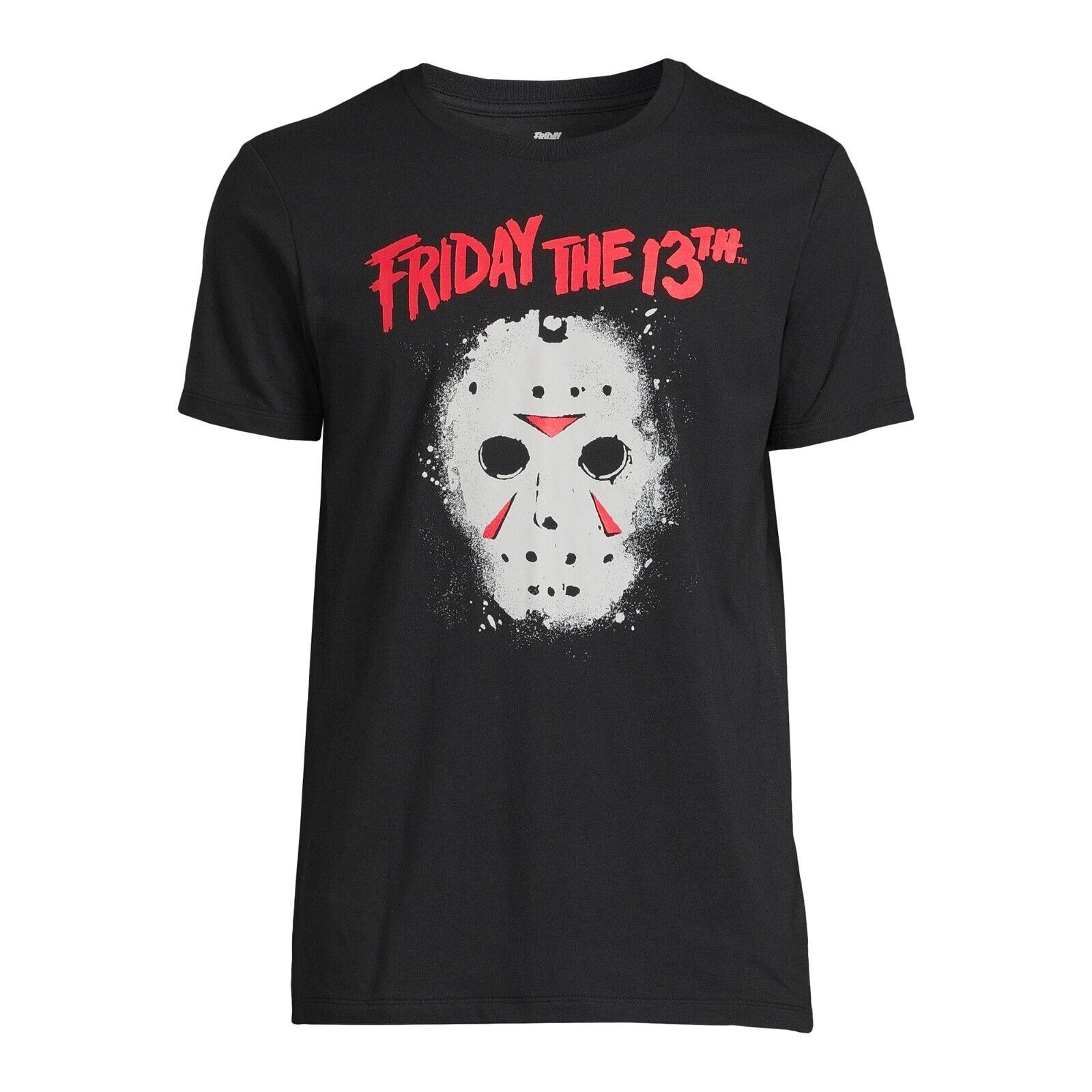 Friday the 13th Jason Mask Halloween Men's Crew Neck T-Shirt, Black Size 2XL(50-