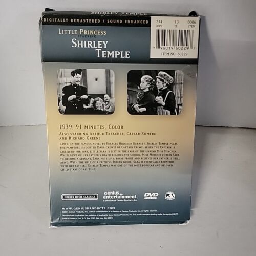 Enhance your collection with this rare DVD of "Little Princess Starring Shirley Temple" released in 2004. This video DVD features the iconic child star in a captivating storyline that will keep you entertained. The DVD is in the format of a disc and belongs to the "Movies TV" and "DVDs Blu-ray Discs" categories. The studio behind this masterpiece is Genius Products.