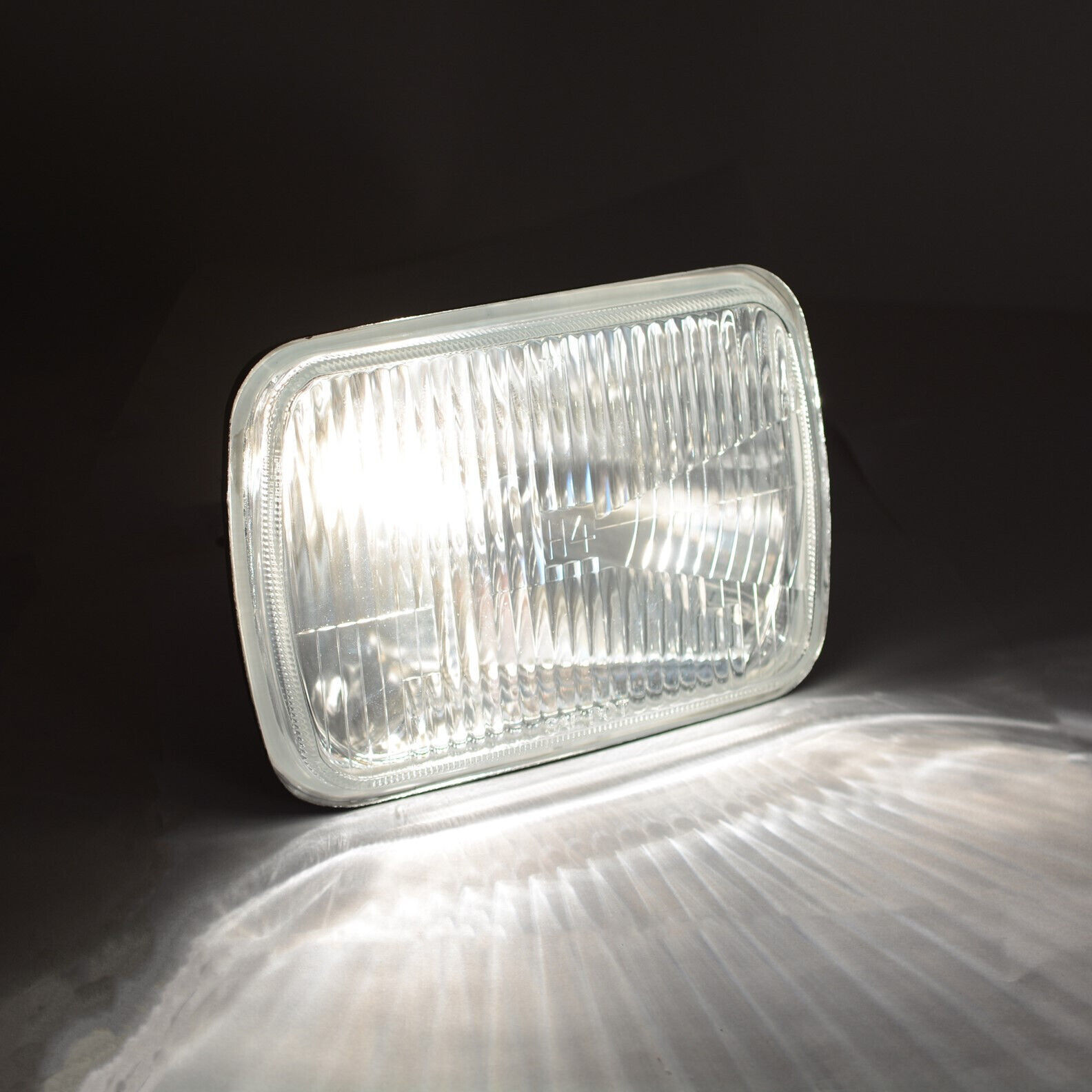 New - 7x6" Stock Glass/Metal Halogen Headlights PAIR