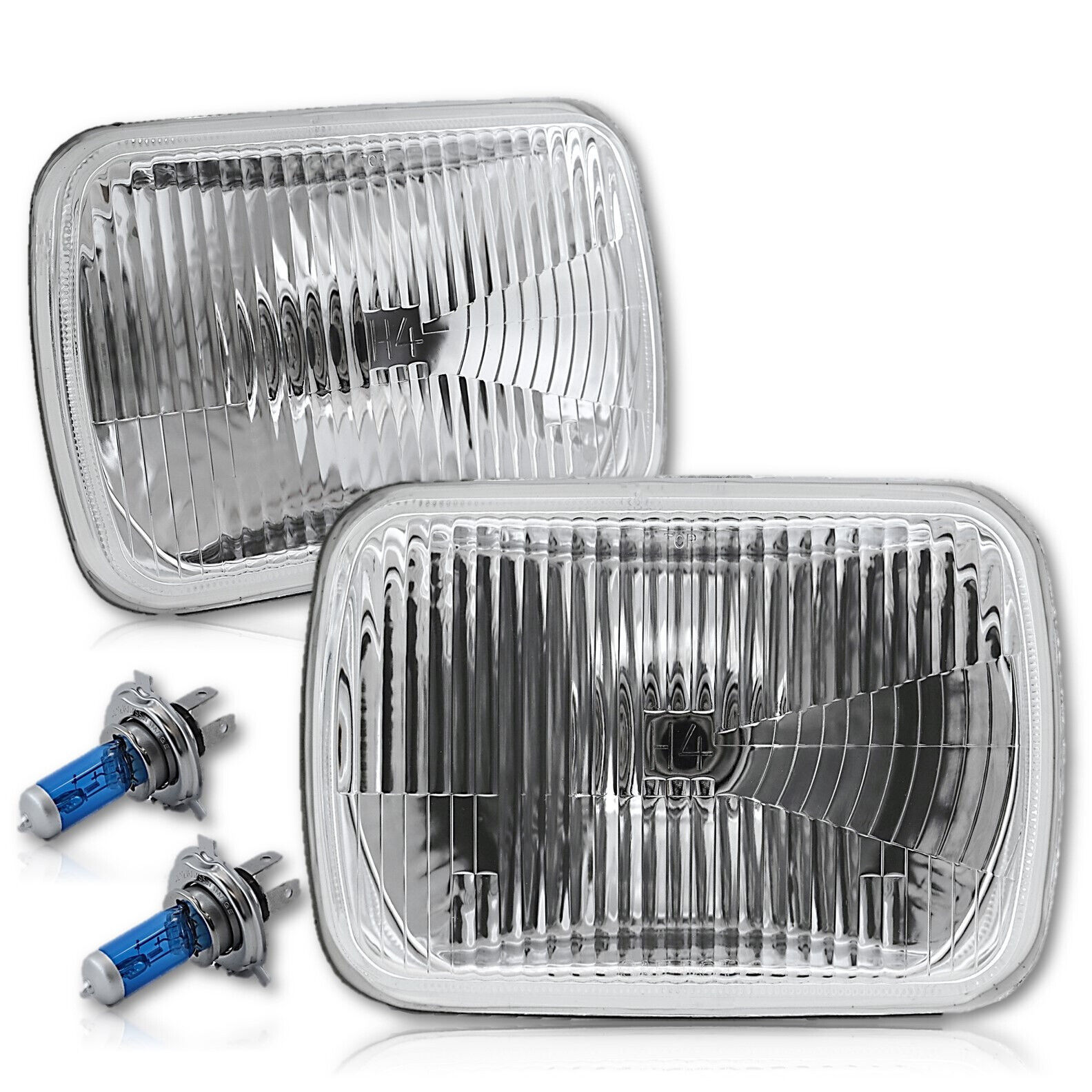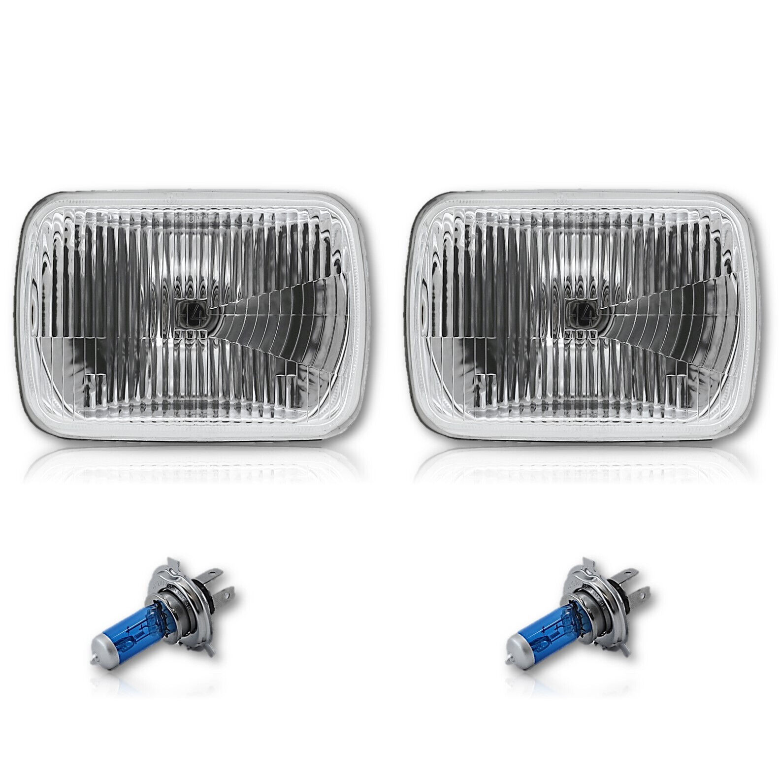 7X6 Glass Stock Style Lens / Metal Halogen Headlight H4 Light Bulb Headlamp Pair