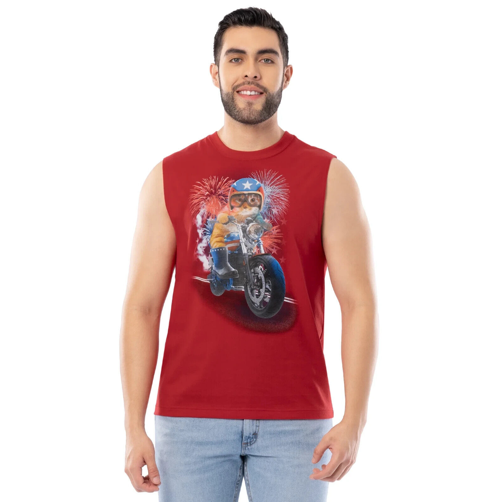 Way to Celebrate Men's 4th of July Motorcycle Cat Muscle Tank, Red Size 2XL(50-52)