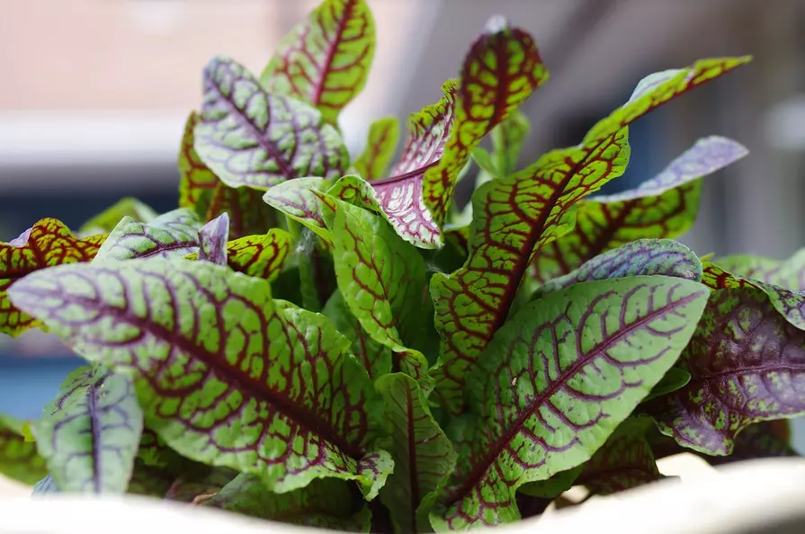 Bright-green leaves with contrasting dark maroon stems and veins add color and taste to salad mix. Same sharp, tangy flavor as regular sorrel. Best variety for indoor production. Best when harvested young for salad mix as large leaves are tough. Has great ornamental use at full size.