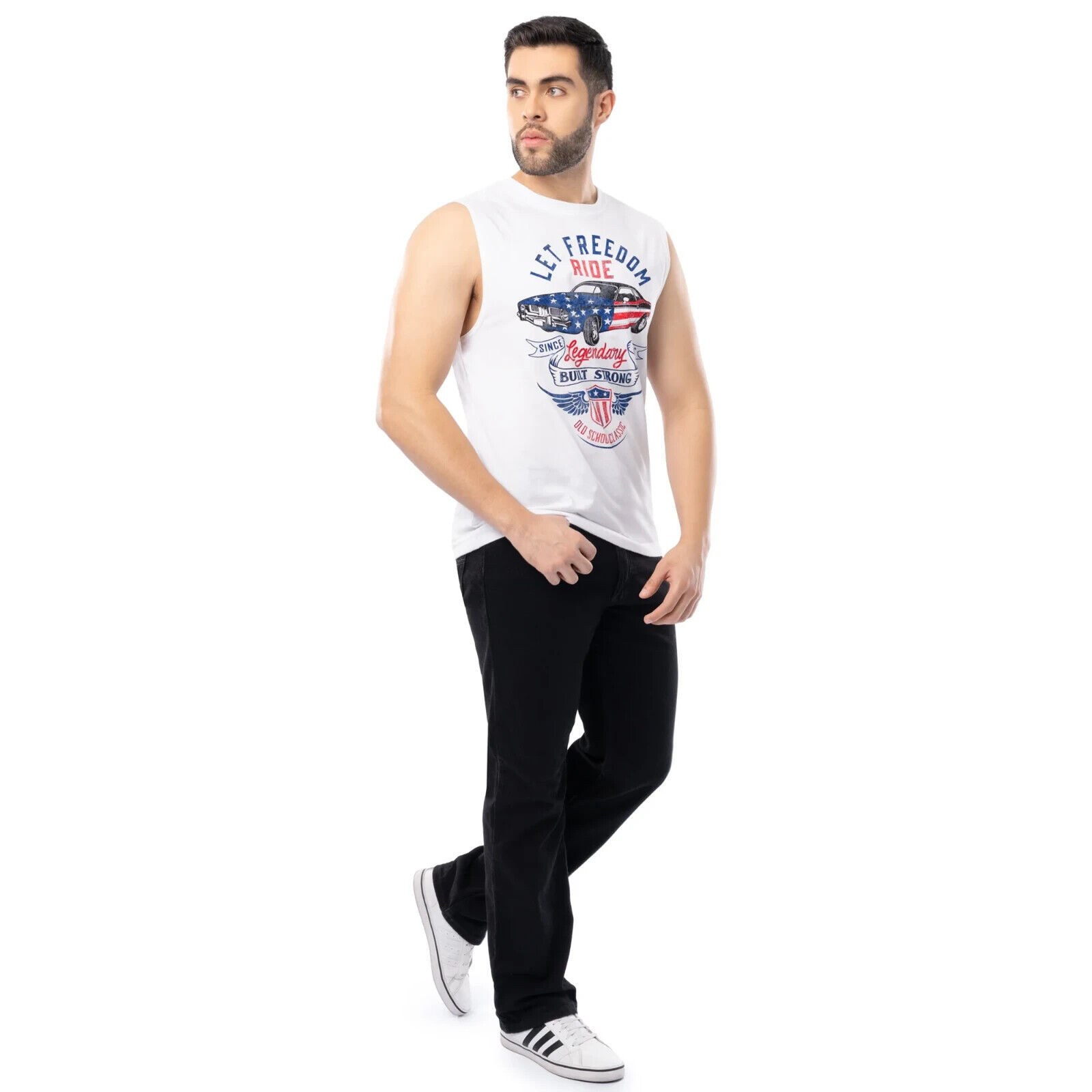 Way to Celebrate Men's 4th of July Vintage Car Muscle Tank, White Size XL(46-48)