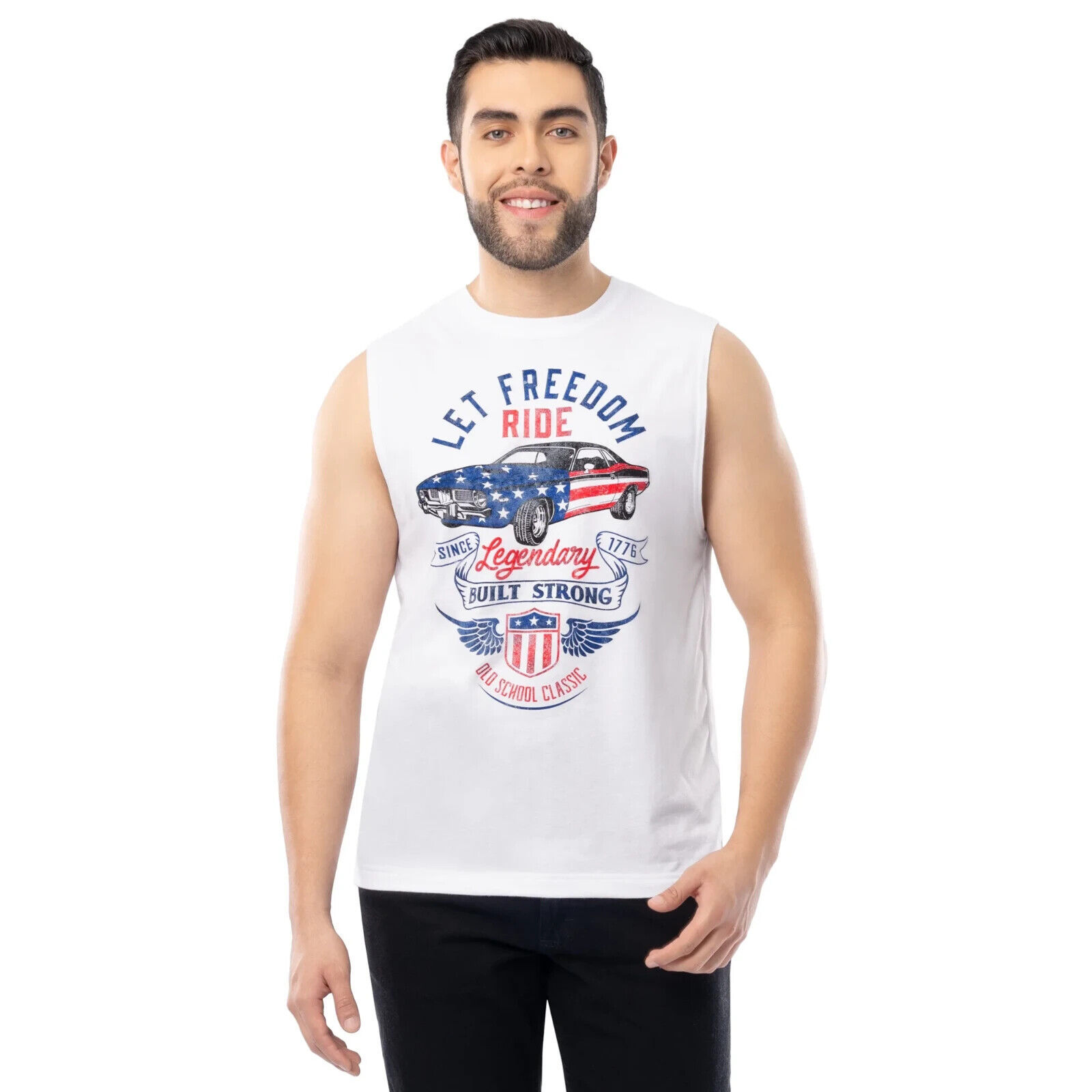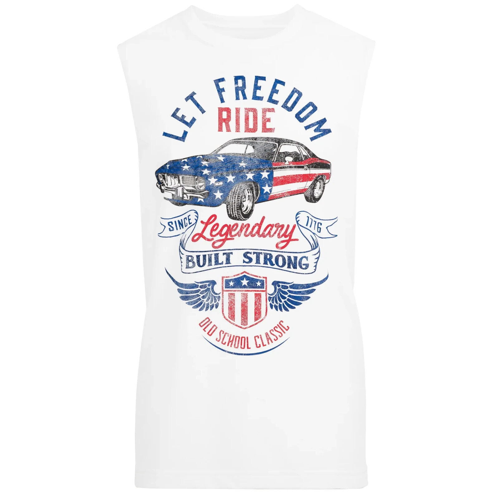 Way to Celebrate Men's 4th of July Vintage Car Muscle Tank, White Size L(42-44)