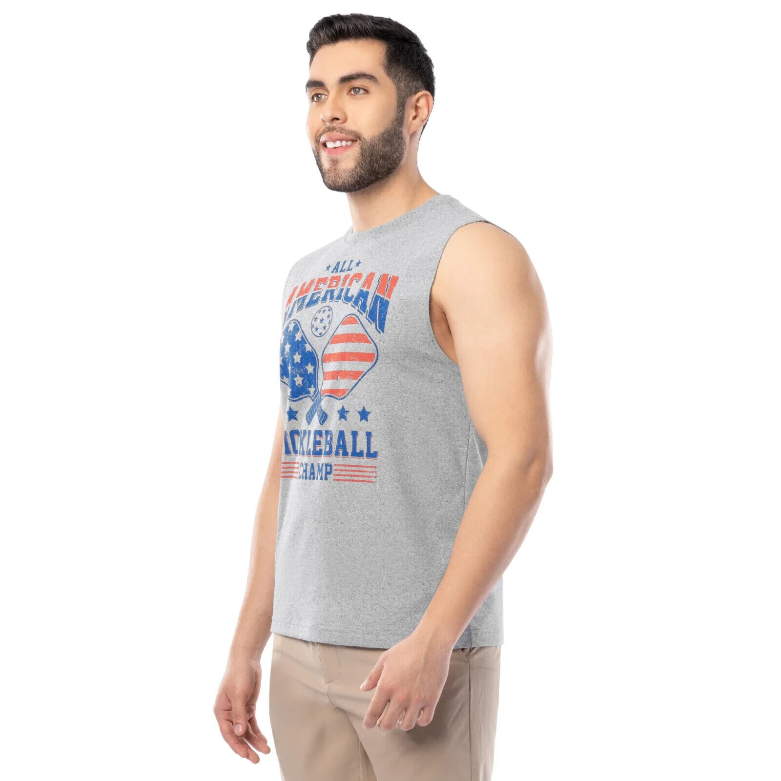 Way to Celebrate Men's 4th of July Pickleball Champ Graphic Muscle Tank, Grey Size M(38-40)