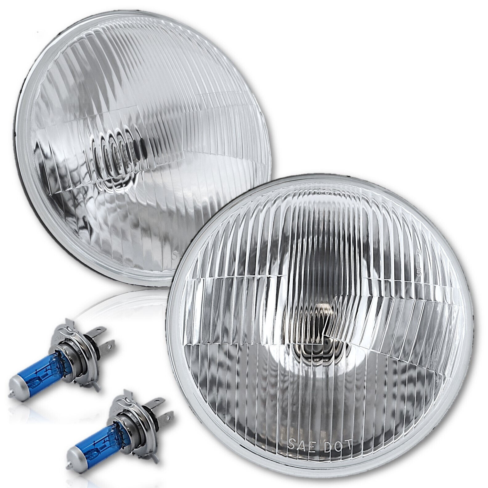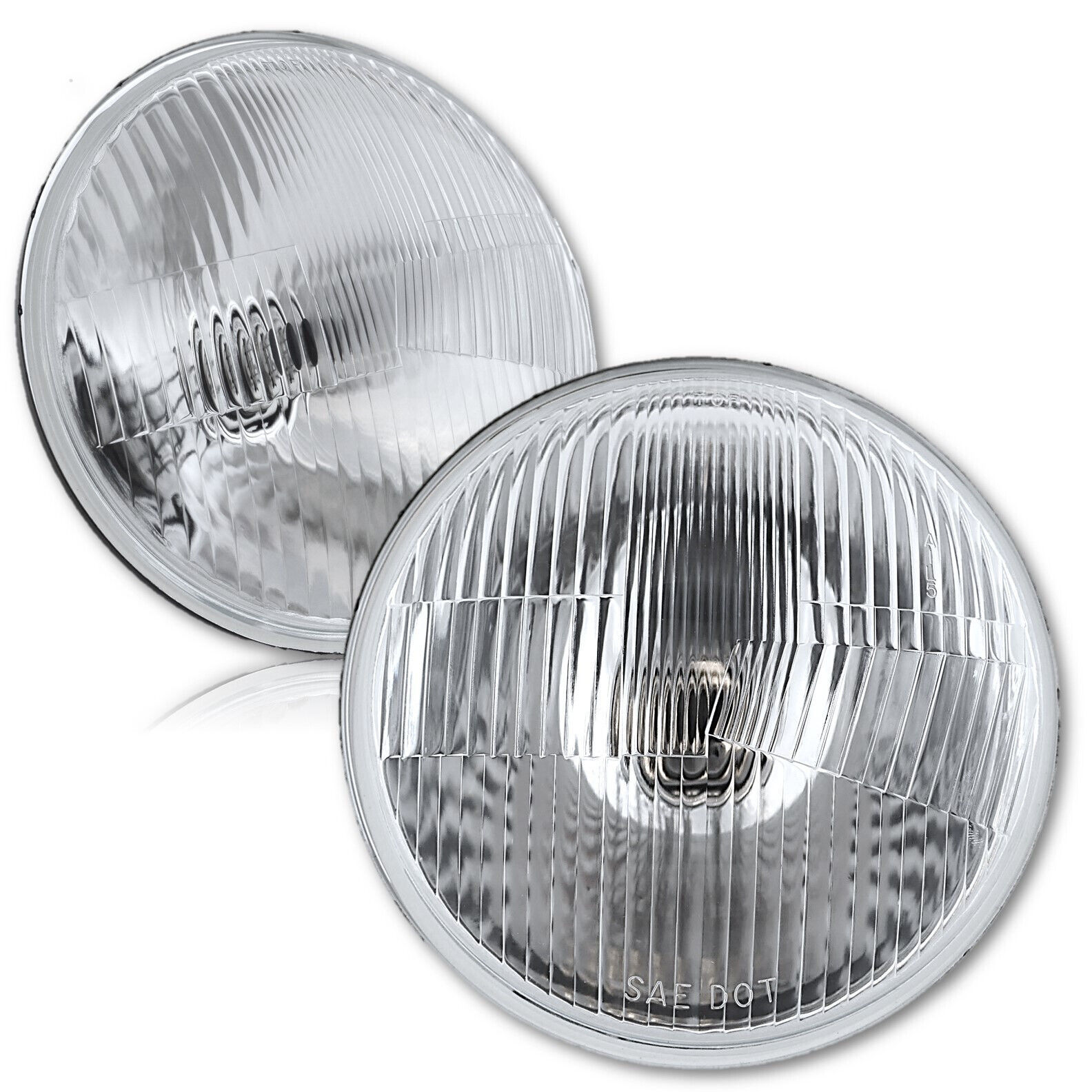 New - 7" Stock Glass/Metal Halogen Headlights PAIR