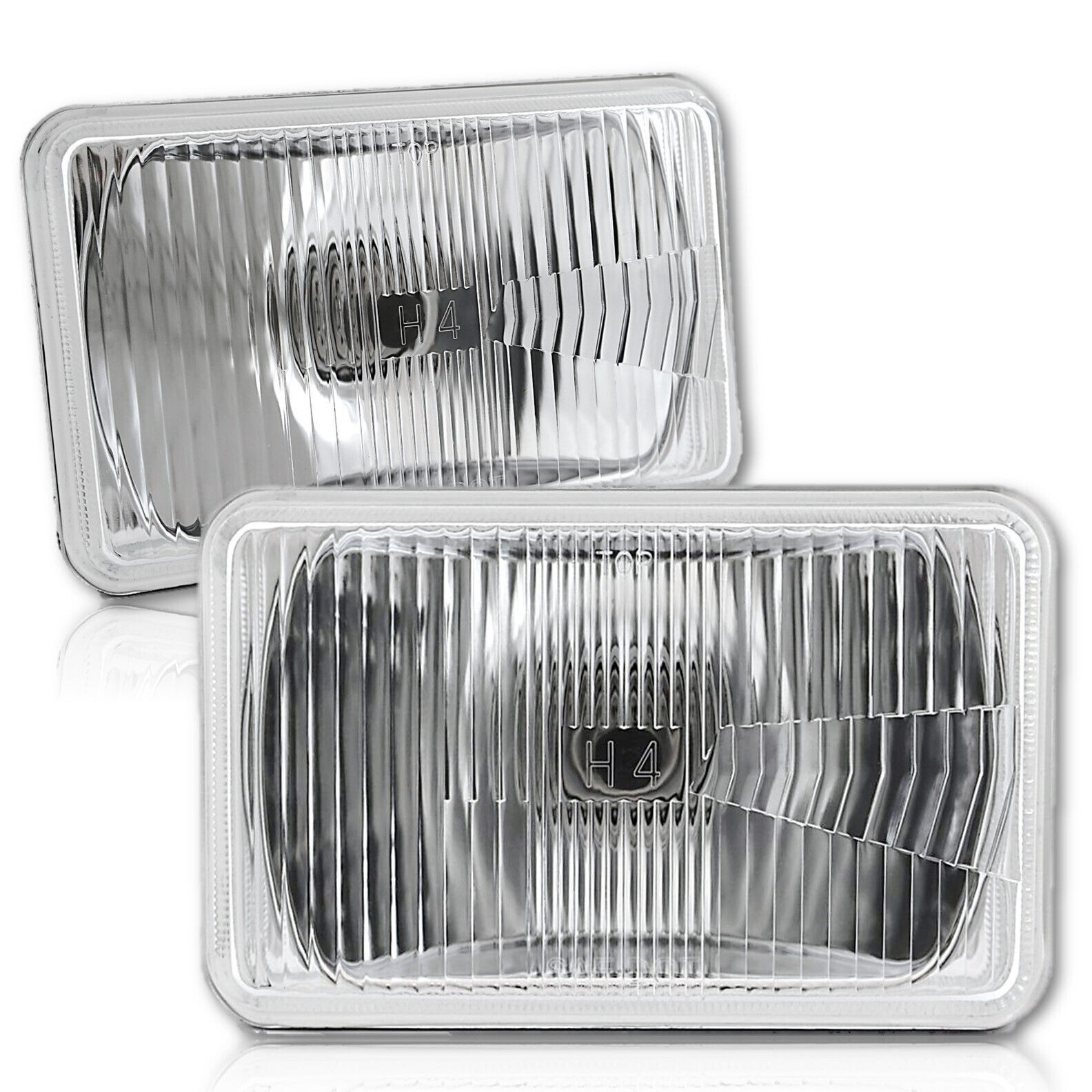 New - 4x6" Stock Glass/Metal Halogen Headlights Set