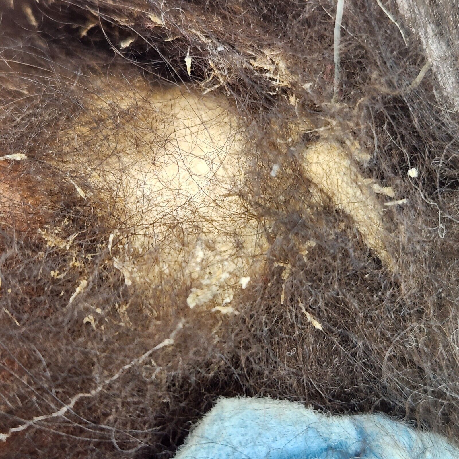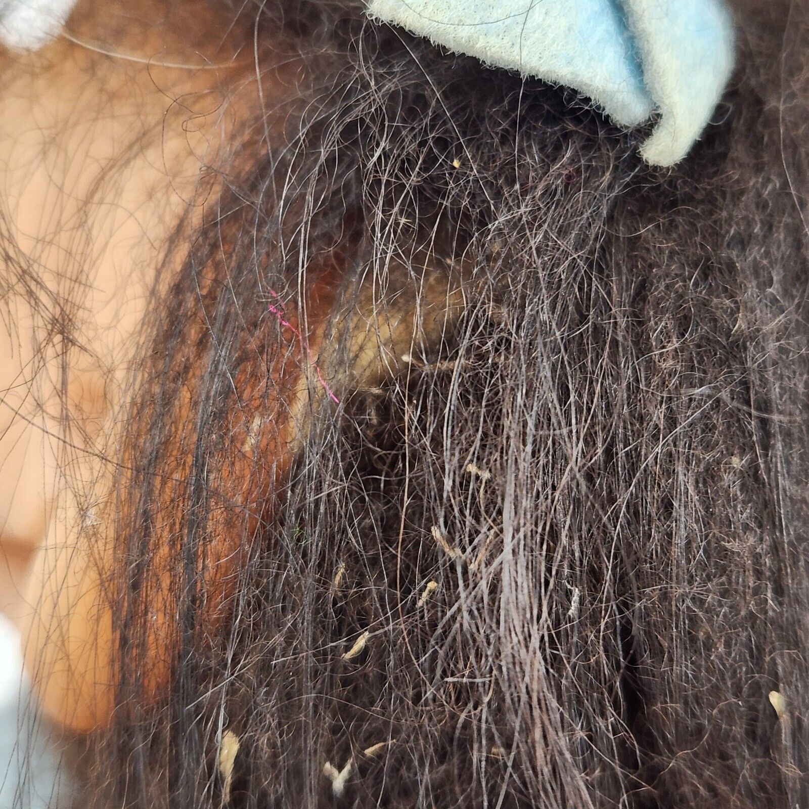 Hair is falling off each time I try to pull the small pieces of her scalp off of her hair