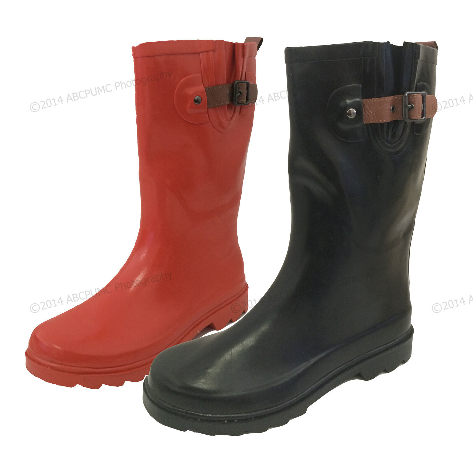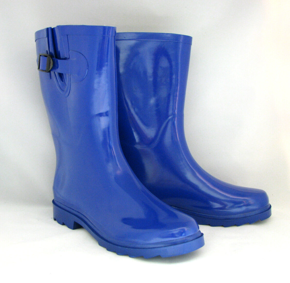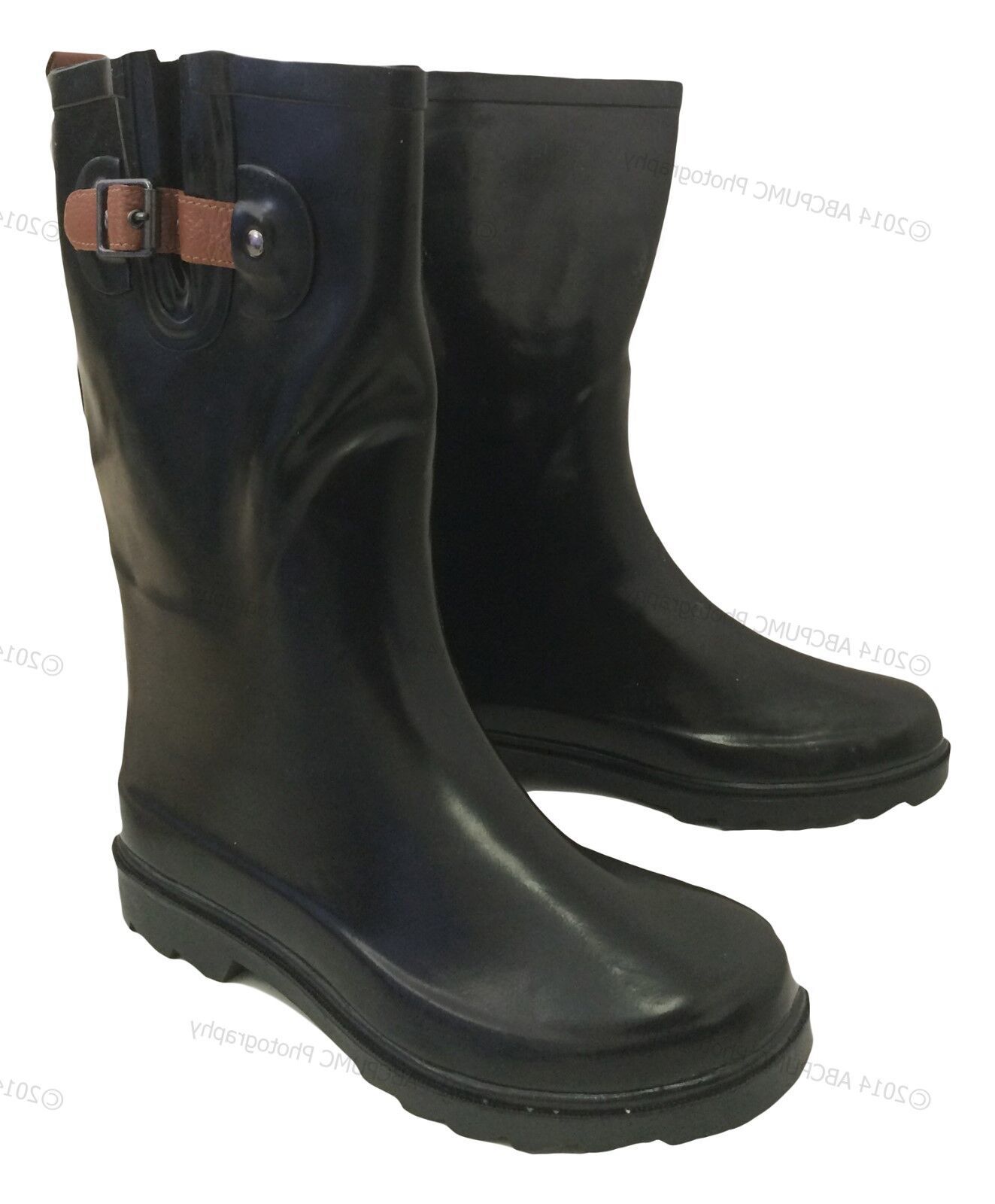 New Womens Rain Boots Rubber Solid Colors Mid Height Wellies Mid Calf Snow Sizes
