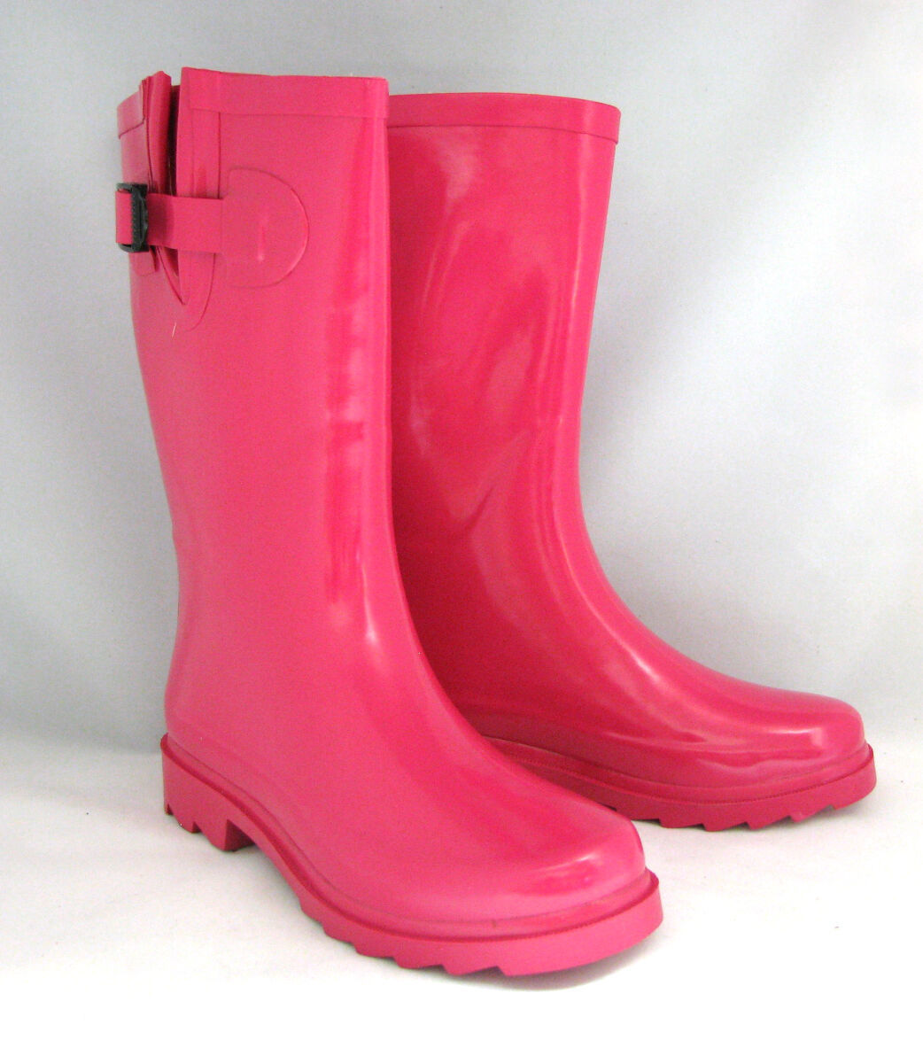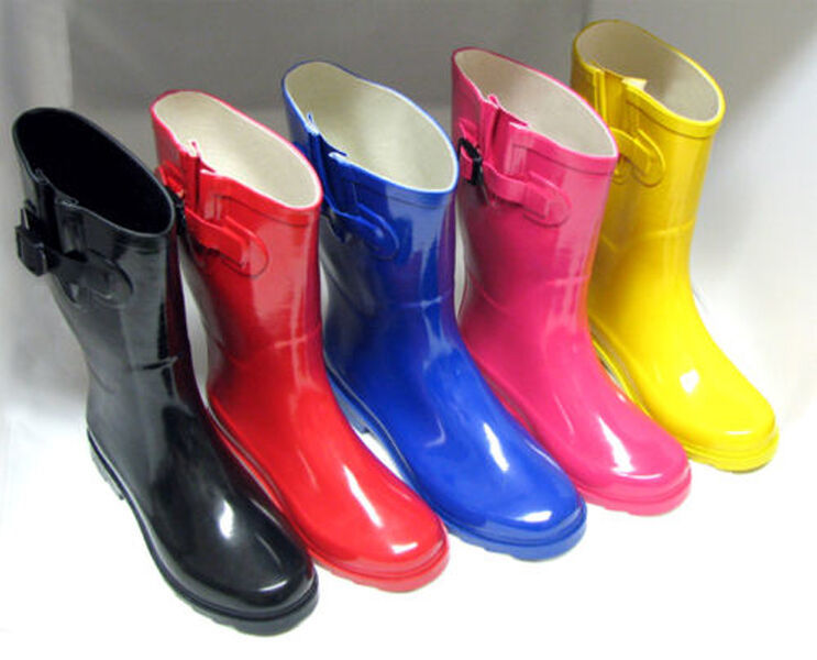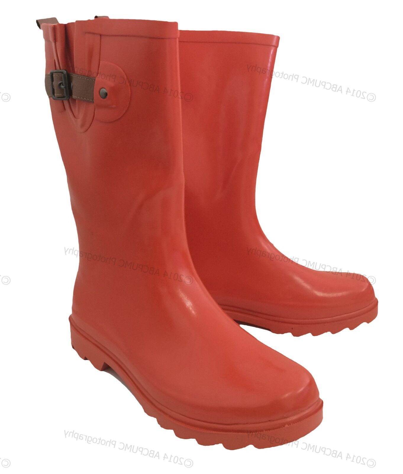 New Womens Rain Boots Rubber Solid Colors Mid Height Wellies Mid Calf Snow Sizes