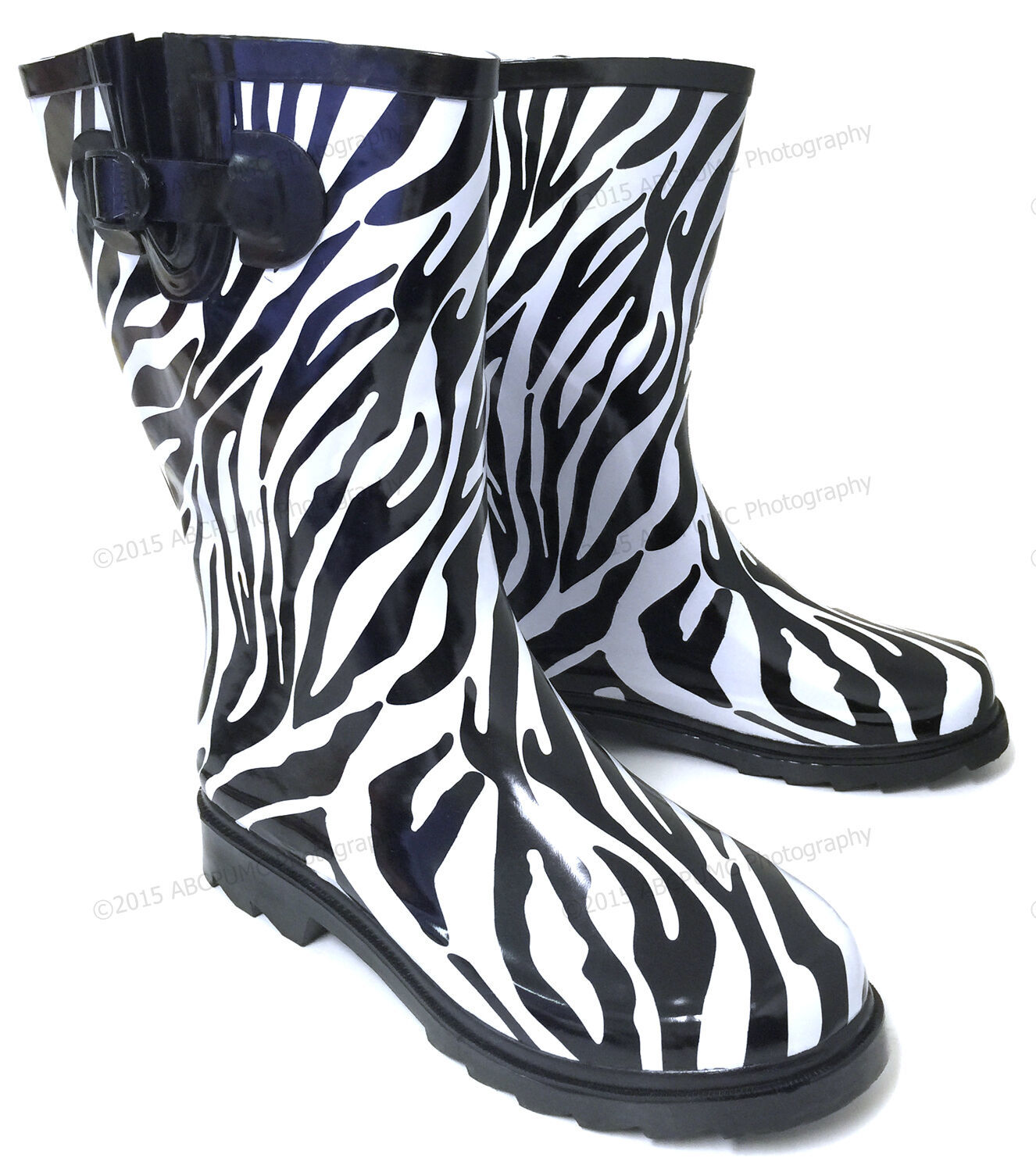 New Women's Rain Boots Flat Wellies\ Mid Calf Rubber Snow boots Colors, Size 5-11