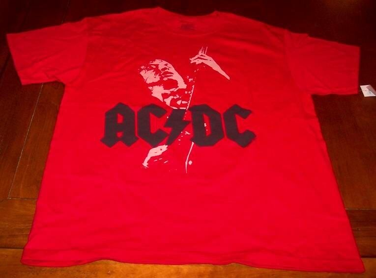 This is a ACDC AC-DC ANGUS PLAYING GUITAR T-shirt. It is a size LARGE, and it is New with the tag. It is 22 inches from armpit to armpit and 30 inches in length. Combine auctions to save on shipping. D2AG