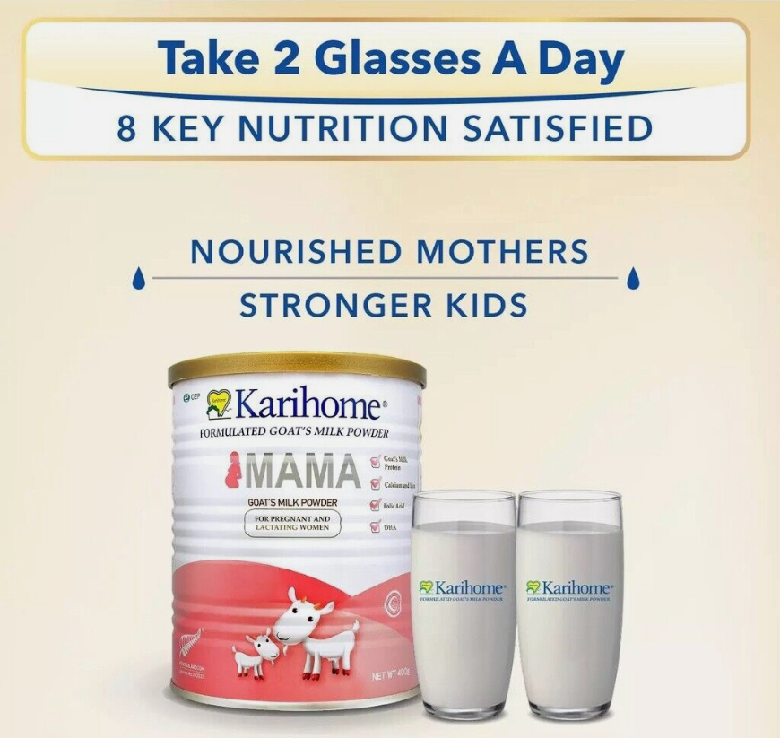 Karihome Mama Goat Milk Formula contains key nutrients required by pregnant and nursing mothers such as folate, calcium and DHA. Goat milk is gentler on the stomach and it provides complete nutrition for mothers and children.