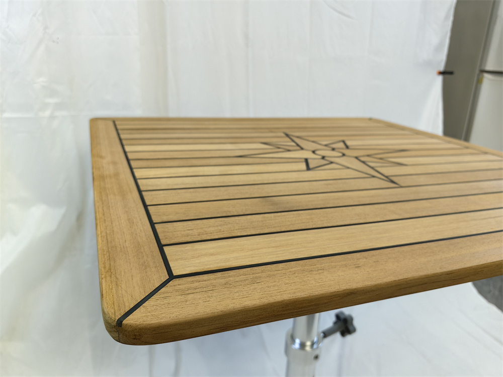 Boat Square Teak Table Top 800x800mm,31.5x31.5 Inch Star Inlay With Caulk-lines Marine Yacht RV TQ80