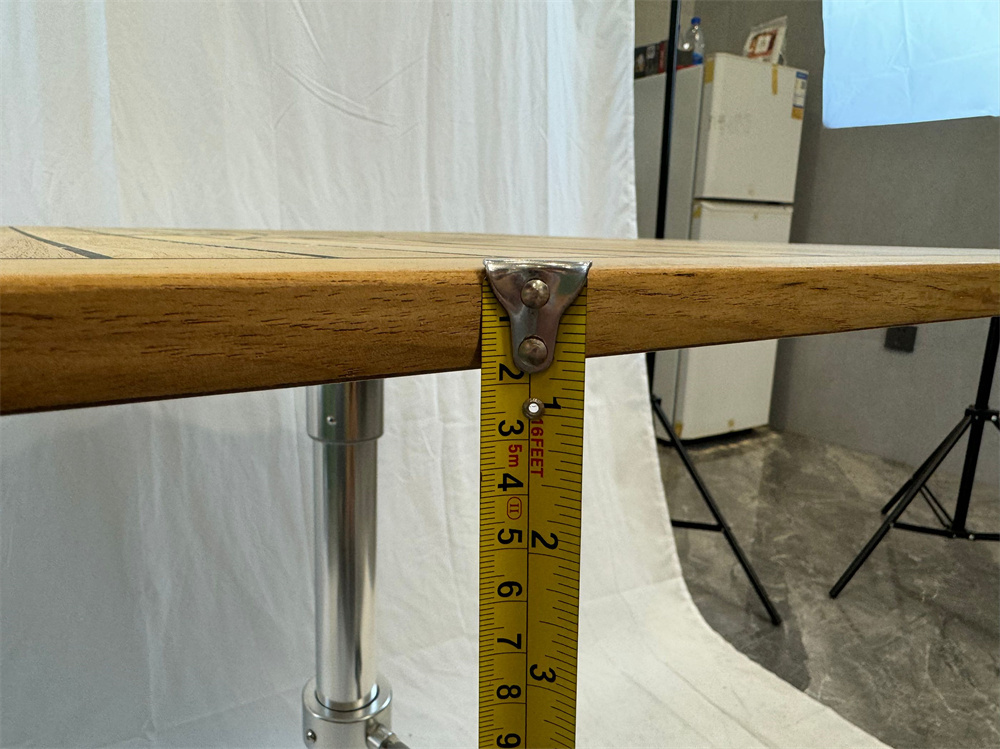 Surface consists of 4 mm thick, carefully selected teak slats bonded with deck caulking