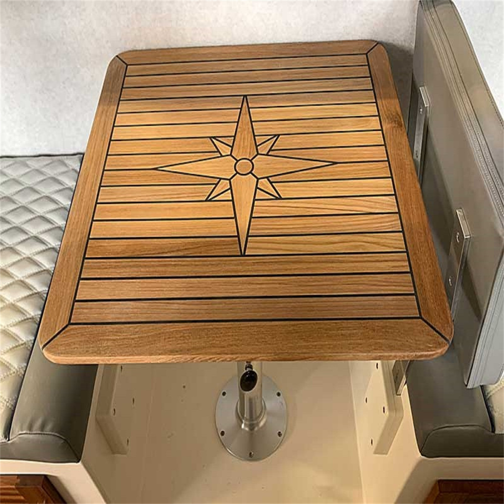 Boat Square Teak Table Top 31.5x31.5 Inch Star Inlay With Caulk-lines Marine RV