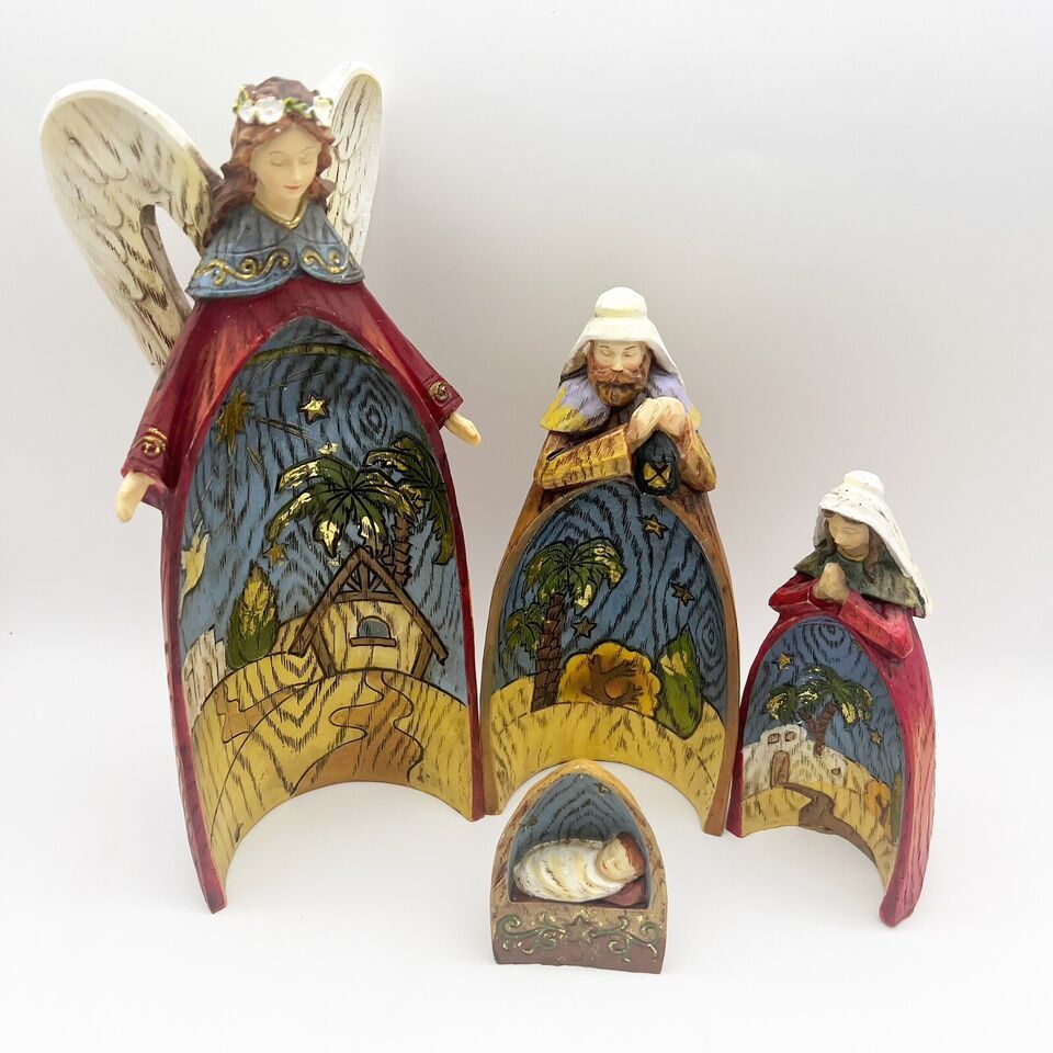 Roman Inc. 4 part Nesting Holy Family, Angel, Manger Baby Jesus