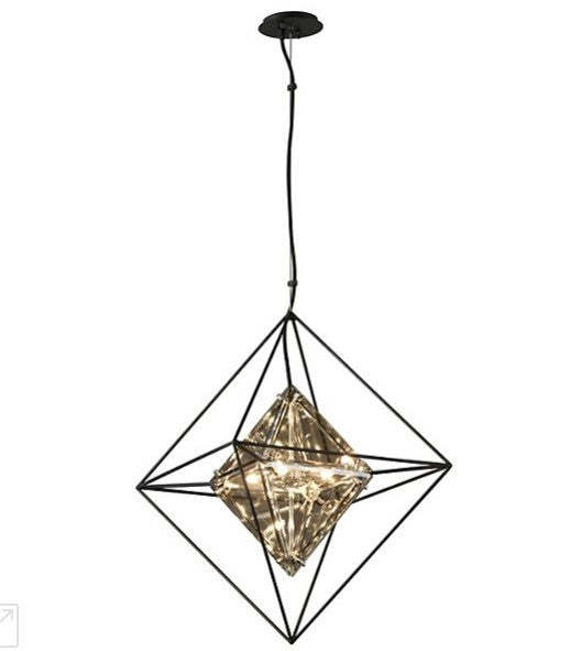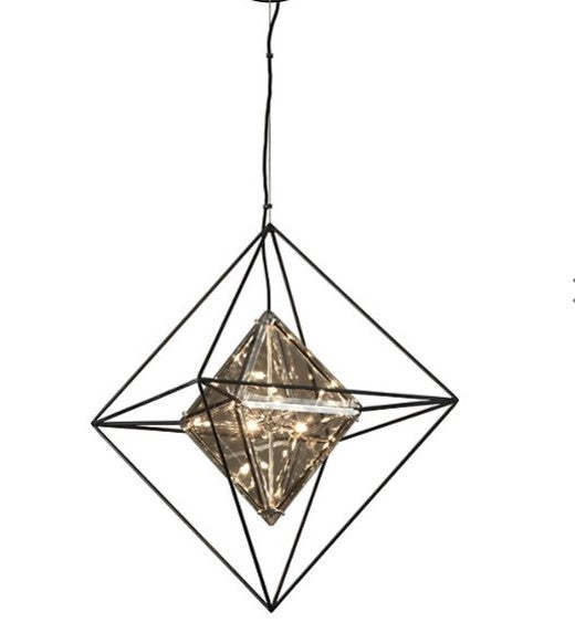 The Troy Lighting Epic Pendant showcases a glass box inside an iron frame to produce a dramatic and enticing lighting option. This diamond shaped fixture features a juxtaposition of materials as well as tones. The negative space in the frame gives this piece a lot of visual weight, adding to its originality and novelty.