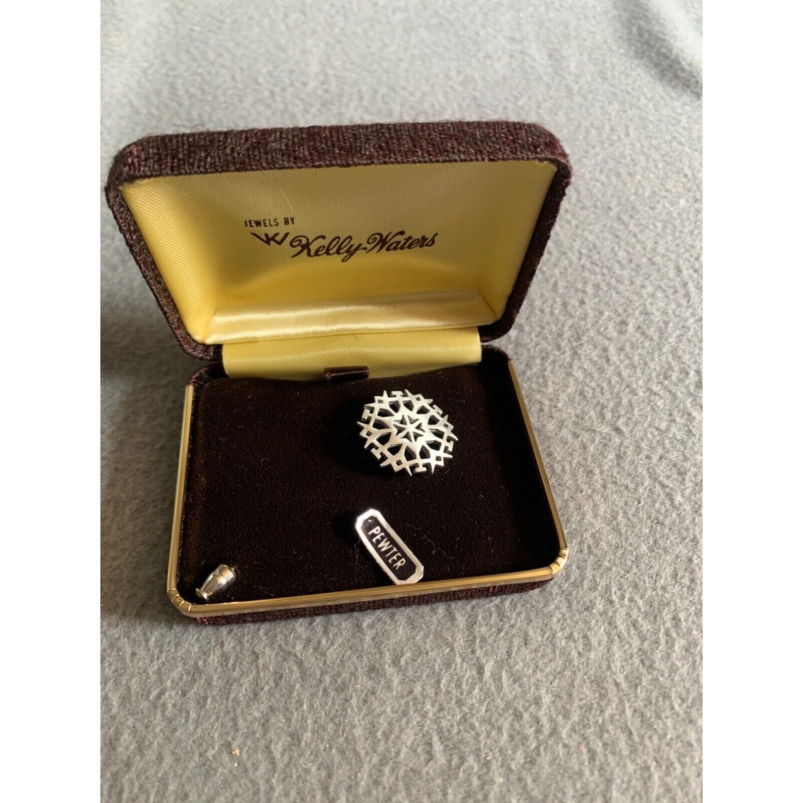 Vintage Kelly-Waters Pewter Snowflake Pin Brooch Original Box 1 Inches Diameter