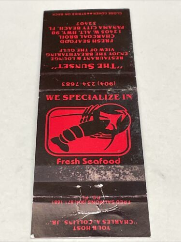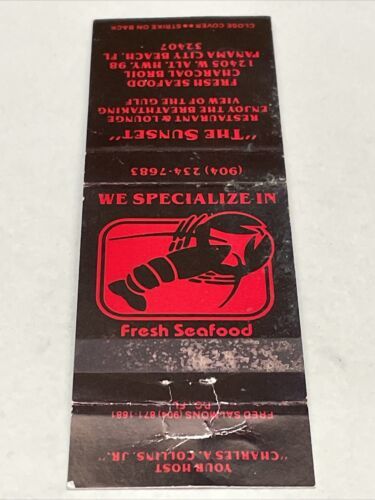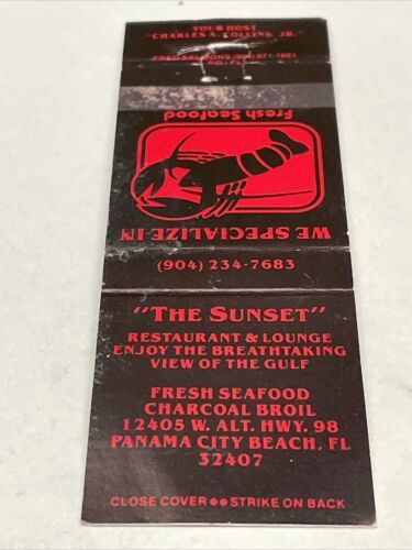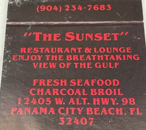 Vintage Matchbook The Sunset Restaurant & Lounge Panama City Bch, FL gmg foxing