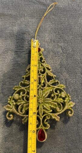 Christmas Tree Ornament Green Glitter Red Jewel Fancy Tree - Holiday Decor