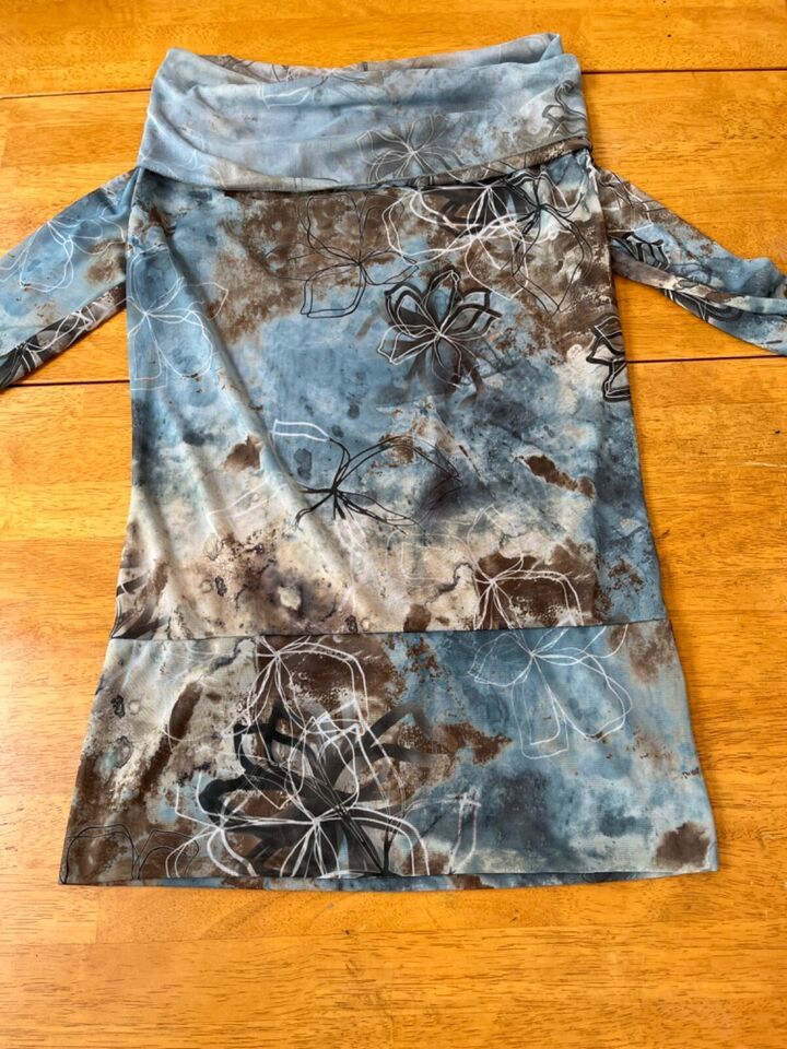 Draped cowl neck Doble mesh sheer liberty art long sleeve blouse top, Size S